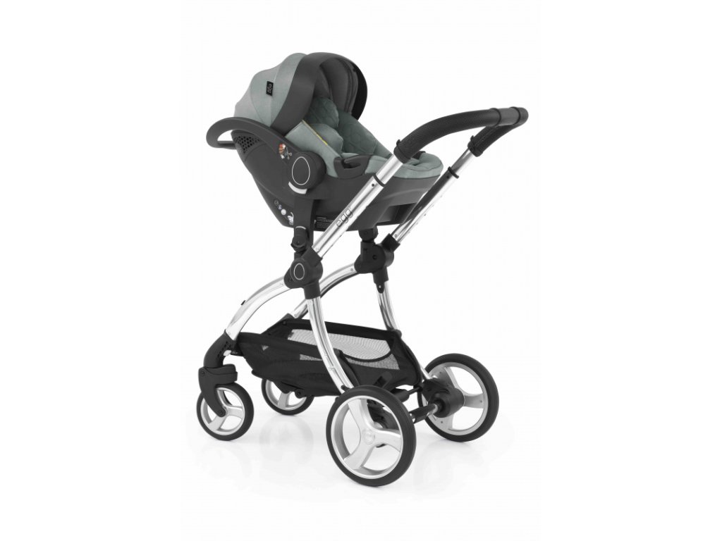 - Nasadenie autosedačky egg Shell do multi adaptérov na podvozku kočíka egg® a egg²® je rýchle a jednoduché a zvládnete to jednou rukou: rukoväť autosedačky nastavíte do kolmej polohy, autosedačku nasadíte na adaptéry a sklopením rukoväti dozadu dôjde k uzamknutiu poistky autosedačky v ráme. Spätným pohybom rukoväte do kolmej polohy poistku odistíte a autosedačku jedným pohybom odstránite z podvozku