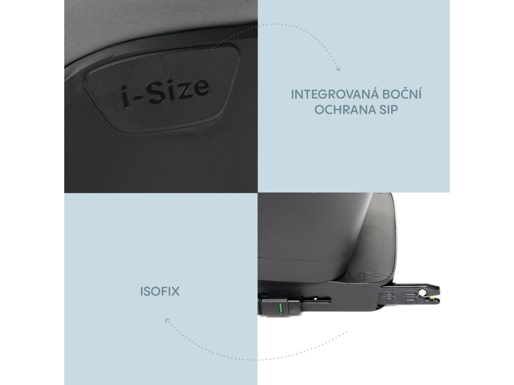 Integrovaná bočná ochrana SIP po celej dĺžke chráni dieťa aj v spodnej časti. Súlad s najnovšou normou i-SIZE zaručuje bezpečnosť počas celého používania.