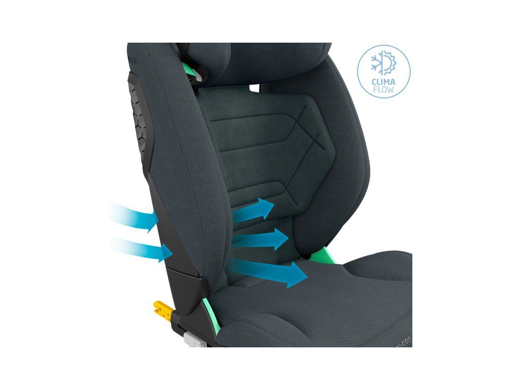 - Funkcia ClimaFlow pre optimálnu tepelnú pohodu dieťaťa - špeciálny vzor a pena operadla spolu s priedušnou tkaninou prispievajú k dobrej cirkulácii vzduchu po celú dobu jazdy