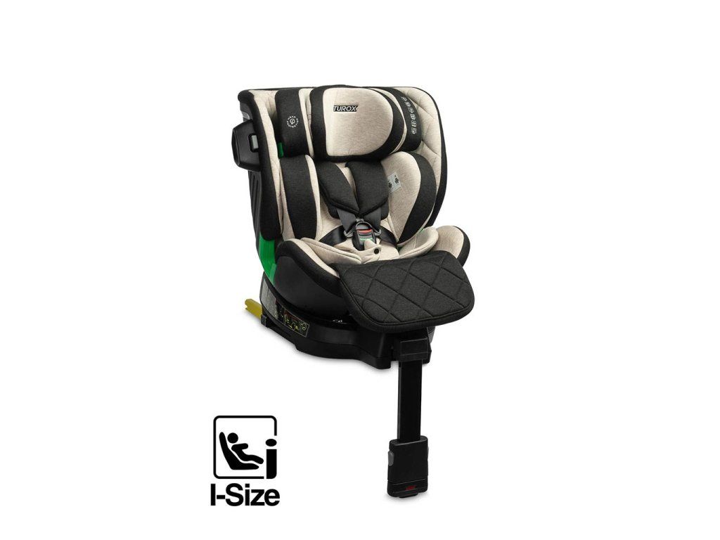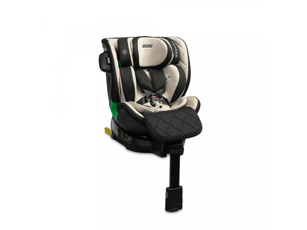 Caretero Turox je autosedačka pre deti s výškou od 40 cm do 150 cm s plne otočnými a stabilizačnými nožičkami. Táto autosedačka spĺňa homologizáciu I-SIZE. Autosedačka Turox poskytuje najvyšší štandard bezpečnosti a pohodlia pre vaše dieťa počas cestovania. Autosedačka je vhodná pre deti od prvých mesiacov života až do doby, keď už autosedačku nepotrebujú, t. j. do dosiahnutia výšky 150 cm. Inštalácia autosedačky je rýchla a jednoduchá a hodí sa do každého vozidla s úchytmi ISOFIX. Autosedačku možno otáčať o 360 stupňov, čo zaručuje pohodlné umiestnenie dieťaťa v autosedačke. Špičkový komfort pre najmenších pasažierov zabezpečuje pohodlná vložka s nastaviteľnou opierkou hlavy. Čalúnenie je vyrobené z polyesterovej tkaniny s bambusom - má vysoké antibakteriálne vlastnosti a umožňuje prirodzenú cirkuláciu vzduchu. Vďaka osemstupňovému nastaveniu opierky hlavy a súprave vložiek možno sedačku dokonale prispôsobiť výške dieťaťa a poskytuje správnu oporu pre oblasť krku a hlavy. Sedačka má 5 stupňov sklonu v polohe po aj proti smeru jazdy. Spona päťbodového bezpečnostného pásu je vybavená zvukovým signálom, ktorý vydáva zvukový signál pri uvoľnení pásu. Ďalšou funkciou je prekrytie SIP (Side Impact Protection), ktoré je umiestnené na boku sedadla a zaručuje väčšiu bezpečnosť v prípade kolízie na ceste.