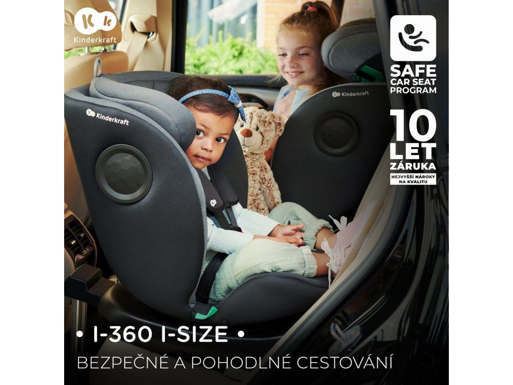 Otočná detská autosedačka I-360 posúva bezpečnosť cestovania na vyššiu úroveň. Je určená pre deti od narodenia do veku asi 12 rokov (36 kg/150 cm výšky). Okrem vyhradených systémov H-GUARD, SPS+ a indikátorov bezpečnej montáže je ISOFIX vybavená stabilizačnou nohou (pre deti do 100 cm výšky, následne ju možno ľahko zastrčiť), ktorá zlepšuje stabilitu montáže detskej sedačky v aute. Má tiež EASY SPIN SYSTEM 360°, vďaka ktorému si sedačku behom chvíľky otočíte k sebe, aby ste mohli svoje dieťa správne pripútať 5-bodovými vnútornými pásmi.