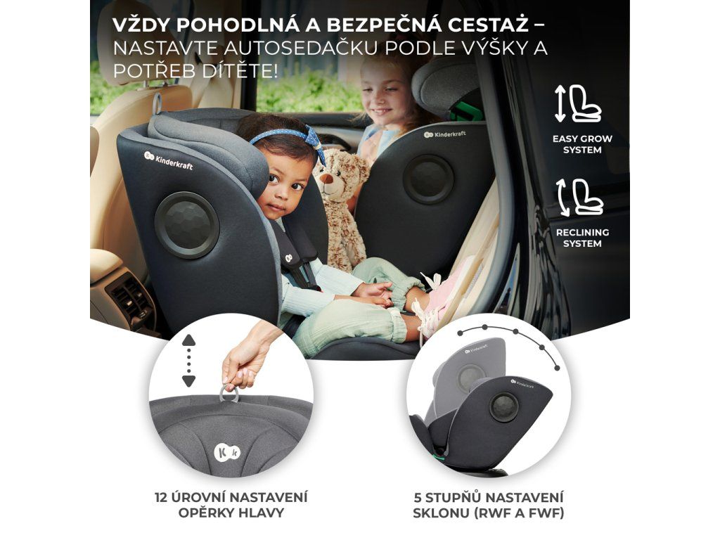I-360 vám umožňuje prepravovať deti chrbtom voči smeru jazdy (RWF) až do veku 4 rokov! Preprava RWF je pre deti až 5x bezpečnejšia v prípade čelného nárazu. A keď nadíde čas na prepravu čelom dopredu, môžete sedačku jednoducho otočiť bez toho, aby ste ju vybrali z auta. I-360 i-Size ochráni vaše dieťa počas celej cesty v autosedačke vďaka 12-stupňovému nastaveniu opierky hlavy a 5-stupňovému nastaveniu sklonu.