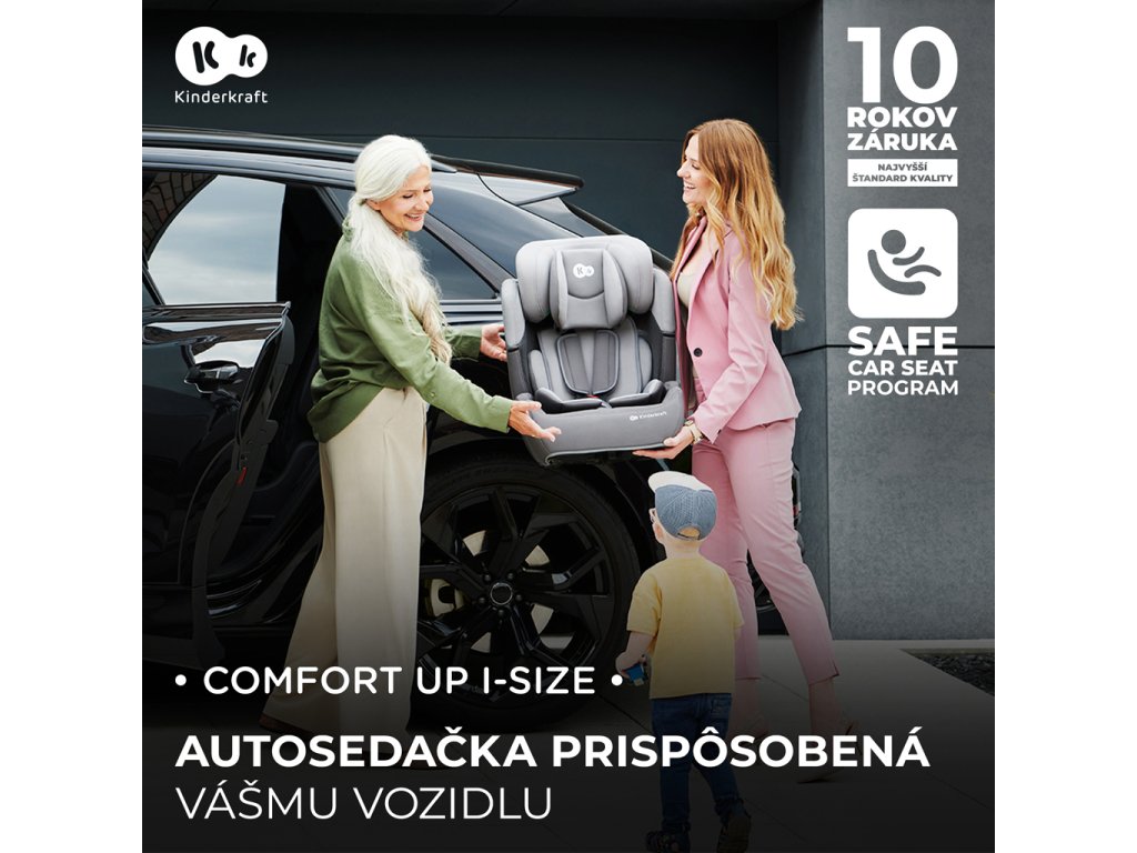 Toto je autosedačka COMFORT UP i-Size pre deti s výškou od 76 do 150 cm. Autosedačka spĺňa najnovšiu normu R129 i-Size. Vďaka nej si môžete byť istí, že Vaše dieťa bude primerane chránené od probližne 15 mesiacov do 12 rokov (podľa starej normy 9-36 kg). Ide o univerzálnu autosedačku z hľadiska montáže a vďaka širokému nastaveniu opierky hlavy a bezpečnostných pásov ju môžete ľahko prispôsobiť svojmu rastúcemu dieťaťu.COMFORT UP i-Size je vybavená funkciami, ktoré zvyšujú komfort používania. Na drobcov okrem mäkkého a priedušného čalúnenia čaká široké, hlboké sedadlo a odnímateľná, modulárna vložka pre malé deti. Rodičov zasa poteší možnosť skrytia vnútorných popruhov a systém EASY GROW, ktorý umožňuje súčasné nastavenie opierky hlavy a popruhov - len jednou rukou.