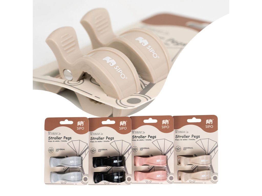 Univerzálne klipy SIPO sú určené na každodenné použitie pri starostlivosti o deti – doma aj na cestách. Ich hlavnou funkciou je umožniť rýchle, bezpečné a stabilné pripevnenie ľahkých detských doplnkov k predmetom, ako sú kočíky, kolísky, autosedačky, cestovné postieľky, tašky alebo vysoké stoličky.