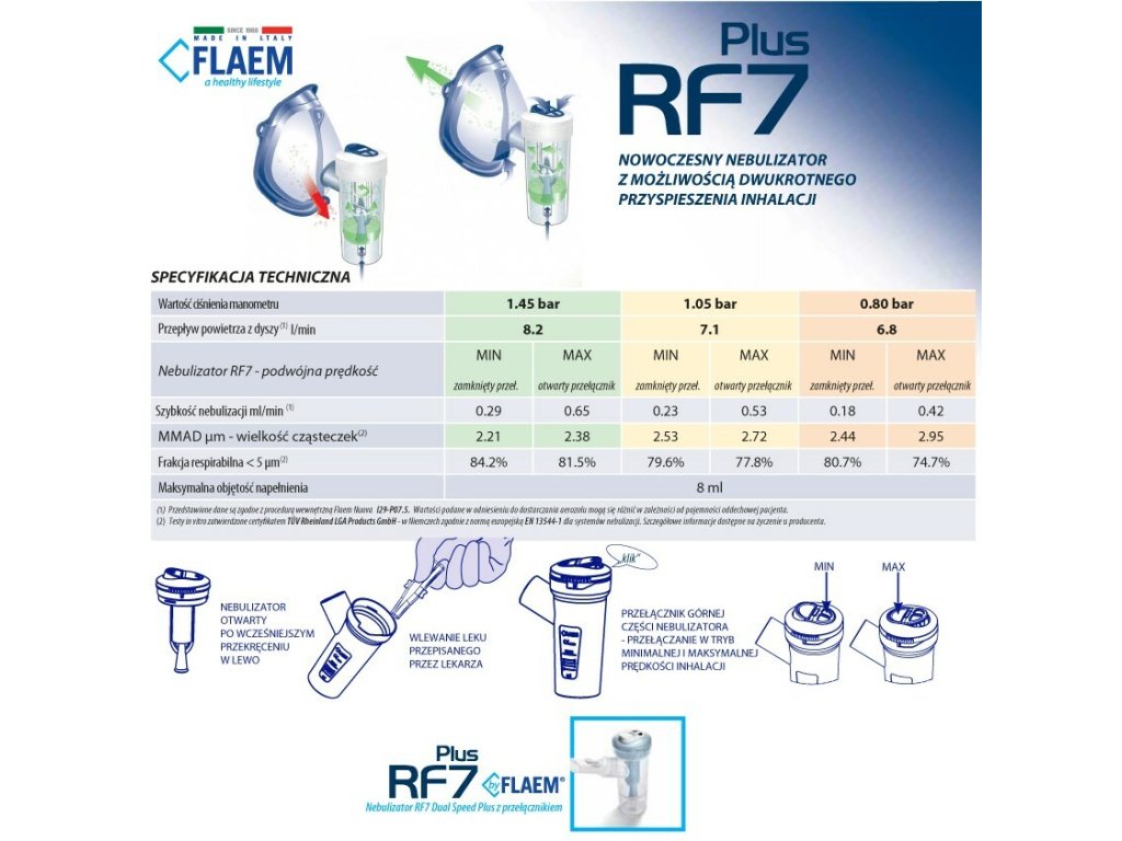 Moderný rozprašovač Rapidflaem 7 Dual Speed (RF7 Dual Speed) má schopnosť zdvojnásobiť rýchlosť inhalácie, čo znamená rýchlejšie dodanie lieku do dýchacieho systému.