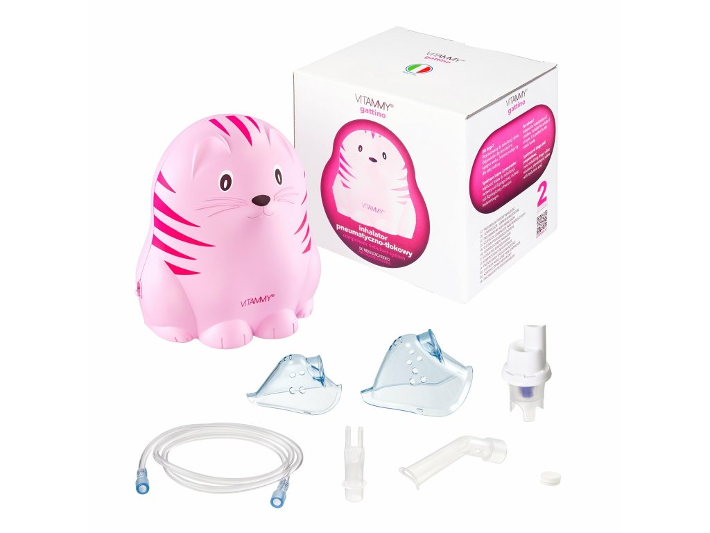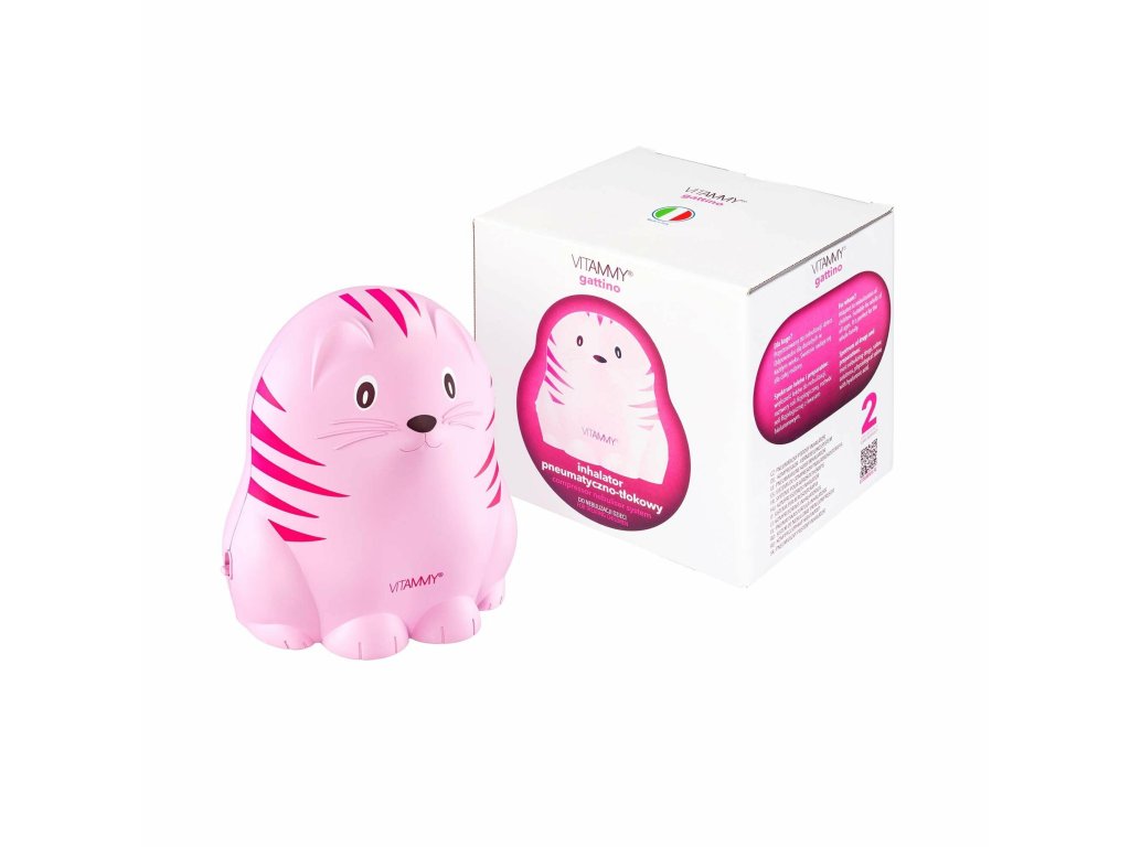 Predstavujeme vám priateľské mačiatko dostupné v dvoch farebných prevedeniach, modré a ružové. Jeho tvar a saténový povrch uľahčujú inhaláciu a vzbudzujú dôveru detí. Inhalátor Vitammy Gattino je zdravotnícka pomôcka, ktorá má parametre nebulizácie v súlade s normou PN-EN13544-1.