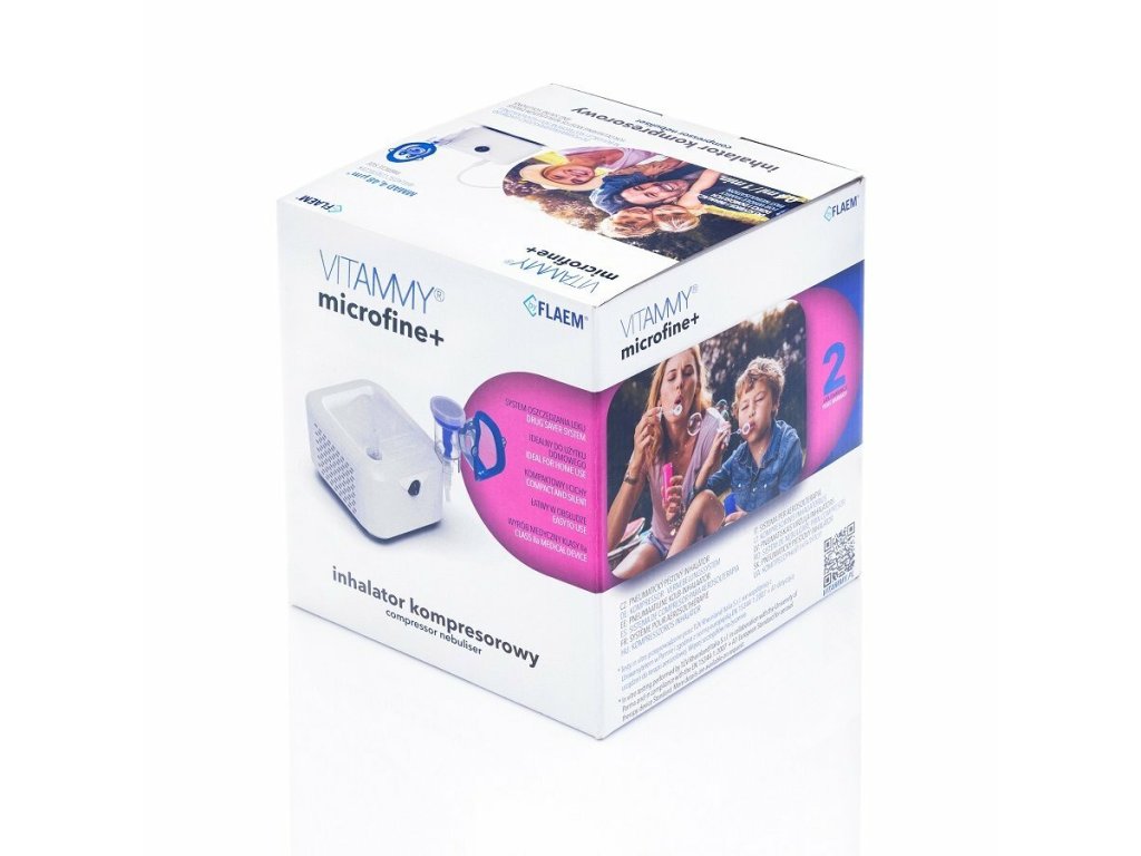 Inhalátor VITAMMY Microfine + je prístroj, ktorý v Taliansku vyrobila spoločnosť FLAEM, svetový líder vo výrobe aerosólových terapií a dýchacích prístrojov.
