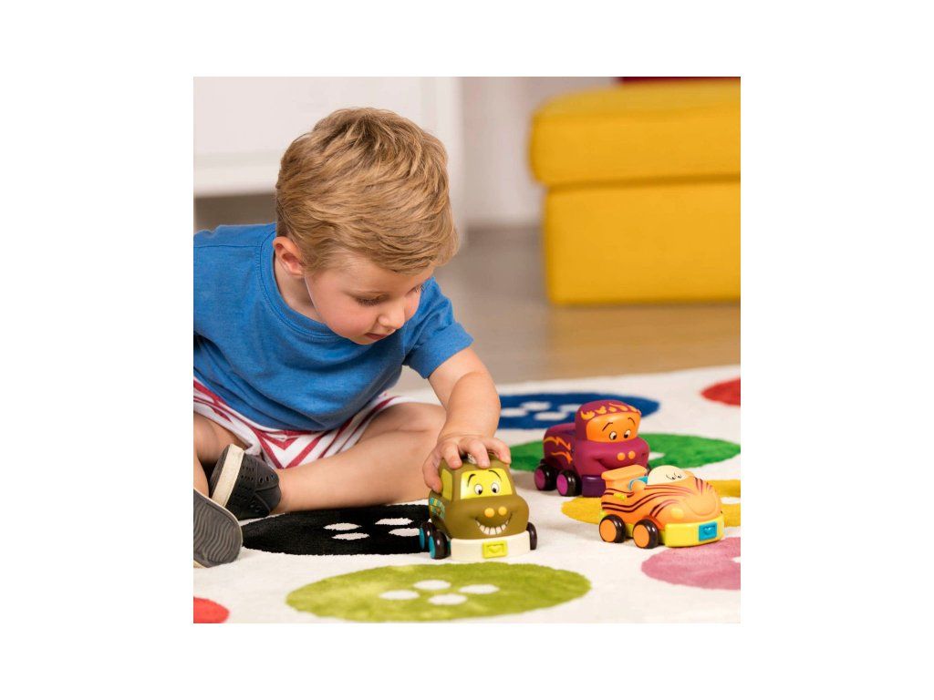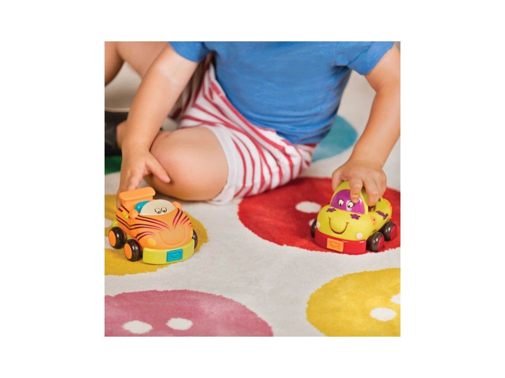 Autíčka sú vyrobené z príjemného, mäkkého materiálu a nepotrebujú batérie.