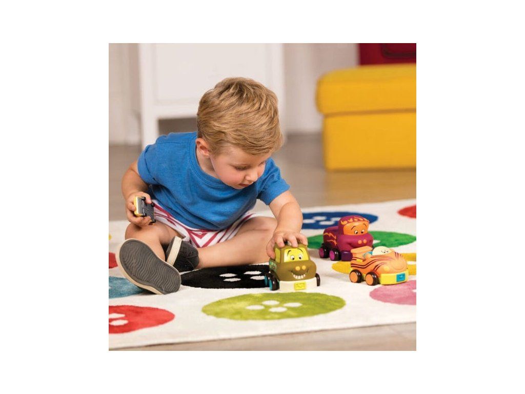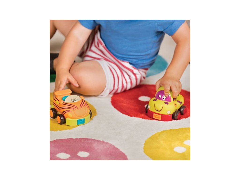 Autíčka sú vyrobené z príjemného, mäkkého materiálu a nepotrebujú batérie.