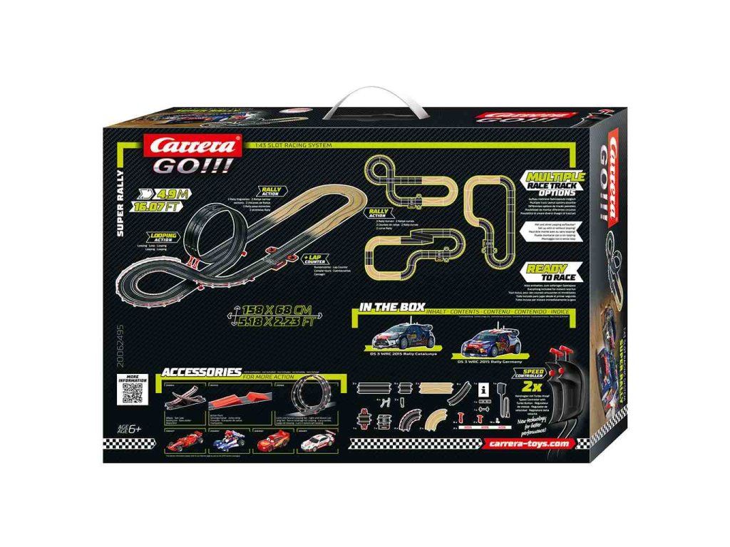 Trať Carrera Go Super Rally s dĺžkou 4,9 metra pre všetkých nadšencov automobilových pretekov. Trať ponúka funkciu turbo, slučky, zákruty a ďalšie. Prebuďte v sebe pocit nadšeného pretekára, ktorý fanúšikovia zažívajú od roku 1963, keď Carrera videla svoju prvú pretekársku trať.