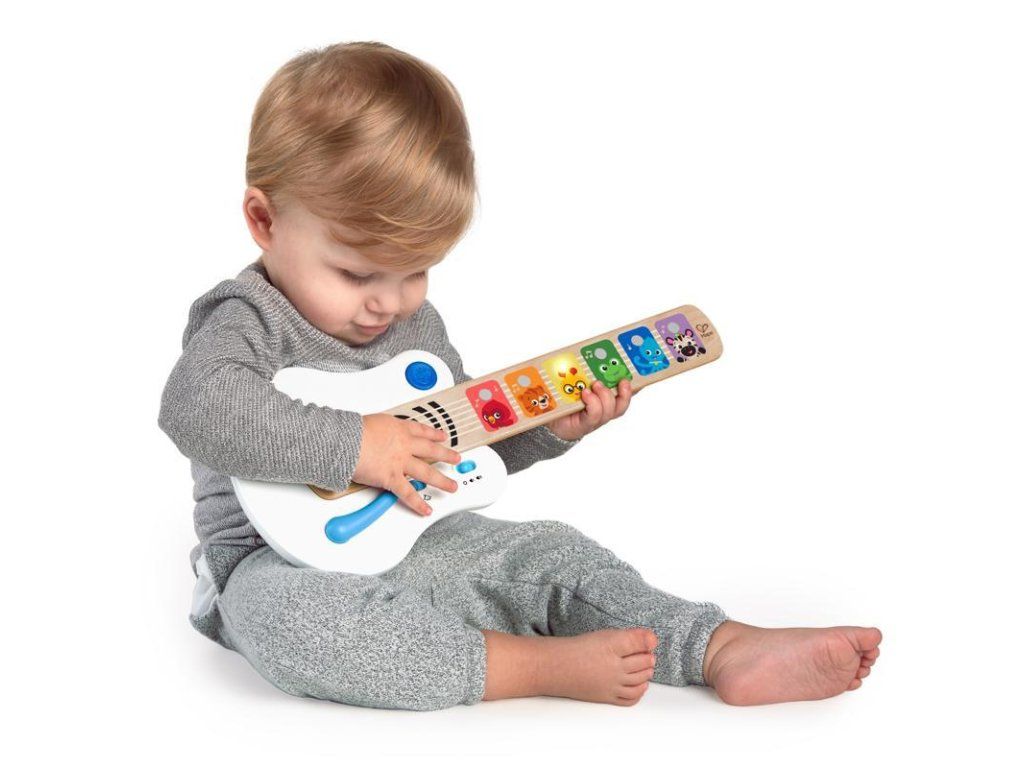 Nechajte Vaše dieťatko objaviť kúzlo gitary pomocou magickej drevenej gitary Strum Along Songs ™ Magic Touch ™ od Baby Einstein.Táto drevená hračka je vybavená ocenenou technológiou Magic Touch, vďaka ktorej máte hudbu na dosah ruky ... bez potreby tlačidiel alebo strún! Realistické zvuky gitary reagujú na brnkavé pohyby vášho dieťaťa. Vaša budúca rocková hviezda môže vytvárať vlastné kombinácie akordov alebo hrať s vopred nahratými melódiami. Pomocou tremola sa prepnete do režimu, kde získate ďalšie zvukové efekty. Táto hračka podporuje rozvoj senzorických a motorických schopností. Podporte tvorivosť a lásku k hudbe s prvou gitarou dieťaťa!