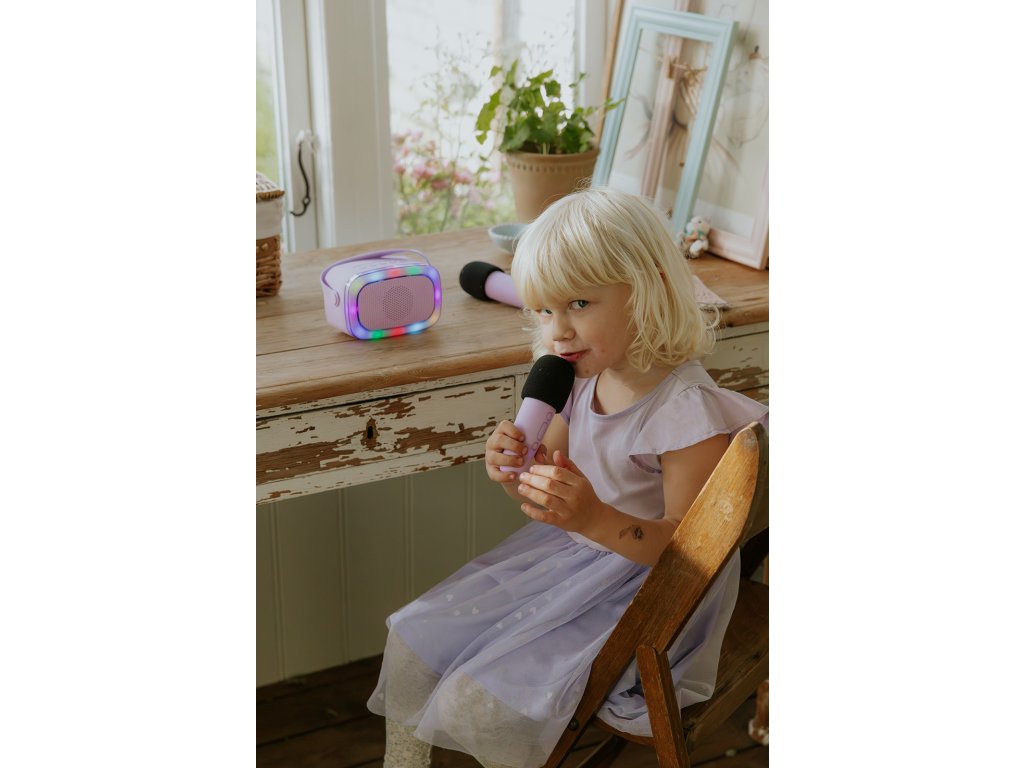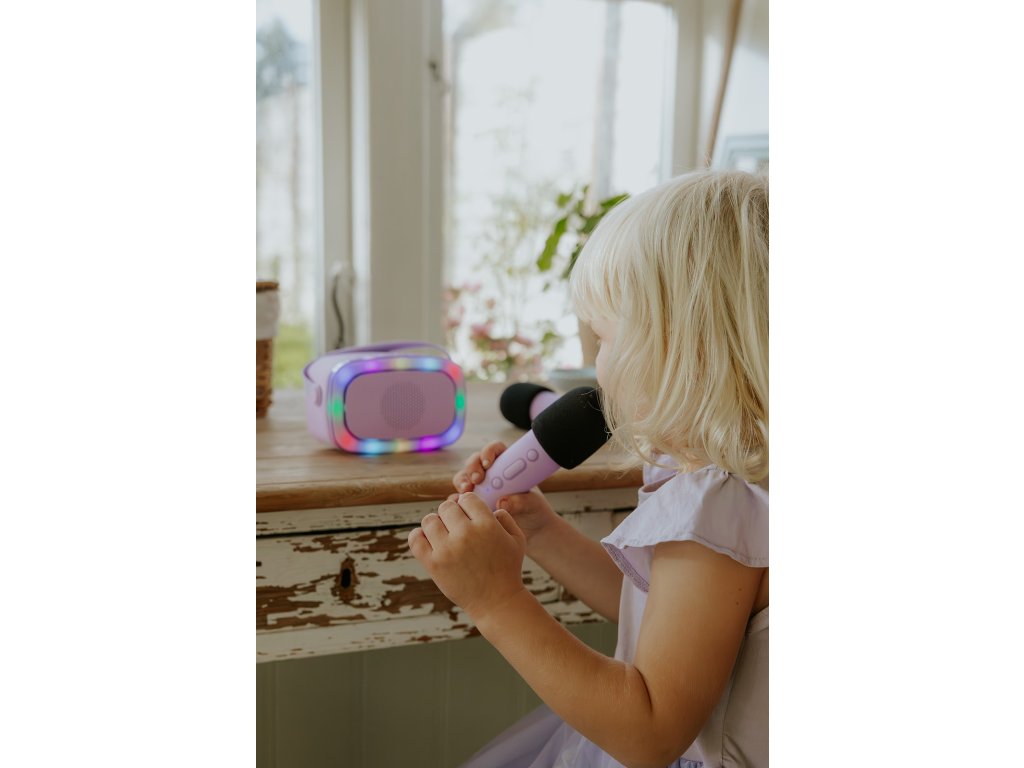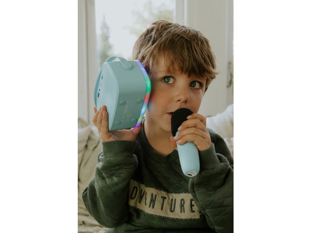 Bluetooth Karaoke párty set + 2 mikrofóny Blue Spievajte a zabávajte sa kdekoľvek a kedykoľvek Modrý karaoke set od Lalarma je perfektný pre každé dieťa, ktoré miluje hudbu. S Bluetooth pripojením ho môžete ľahko spojiť so svojím smartfónom alebo tabletom a púšťať si hudbu priamo z obľúbeného zariadenia alebo si svoje obľúbené pesničky môžete nahrať na TF/SD kartu. Vďaka 2 mikrofónom a žiarivým LED svetlám, s 5 svetelnými režimami, bude tento karaoke set hlavnou hviezdou každej párty. Reproduktor ponúka štyri zábavné hlasové efekty, ktoré zaisťujú nekonečnú zábavu pre vaše malé talenty. Karaoke set pre hudobné talenty Prenosný reproduktor môžu deti zobrať kamkoľvek - na záhradu, do parku alebo na dovolenku. Tento šikovný reproduktor nielenže hrá skvelú hudbu, ale obsahuje aj mikrofóny, takže deti môžu spievať a baviť sa s priateľmi na každom mieste. Vďaka gumovému povrchu a praktickej silikónovej šnúrke je karaoke set nielen štýlový, ale aj odolný. Navyše, je vyrobený z recyklovaného plastu, takže chráni aj našu planétu.Technické špecifikácie: 4 hlasové efekty, LED svetlá s 5 svetelnými režimami,2x bluetooth mikrofón a reproduktor,TF/SD micro karta,USB port,bezdrôtové zariadenie,vyrobené z recyklovateľného plastu.Reproduktor: Bezdrôtové pripojenie: Bluetooth v5.0Výkon reproduktora: 46WFrekvencia: 20Hz - 20kHzEcho efekt: Áno Napájanie: DC5V 1A Batéria: 1800mAh (18650) Nabíjanie: USB-C nabíjací portDoba nabíjania: cca 2 hodinyVýdrž reproduktora: 5 hodínRozmery: 90 x 75,3 x 65 mmHmotnosť: 340 g Mikrofóny: Bezdrôtové pripojenie: Bluetooth v5.0 Pracovné napätie: 3,7V Frekvencia: 20Hz - 20kHz Echo efekt: Áno Napájanie: DC5V 1A Batéria: 1200mAh (18650) Nabíjanie: USB-C nabíjací port Doba nabíjania: cca 2-4 hodinyVýdrž mikrofónov: 5 hodínRozmery: 135,8 x O 37,7 mm Hmotnosť: 100 gSúčasťou balenia je USB nabíjací kábel.Dodatočné parametre