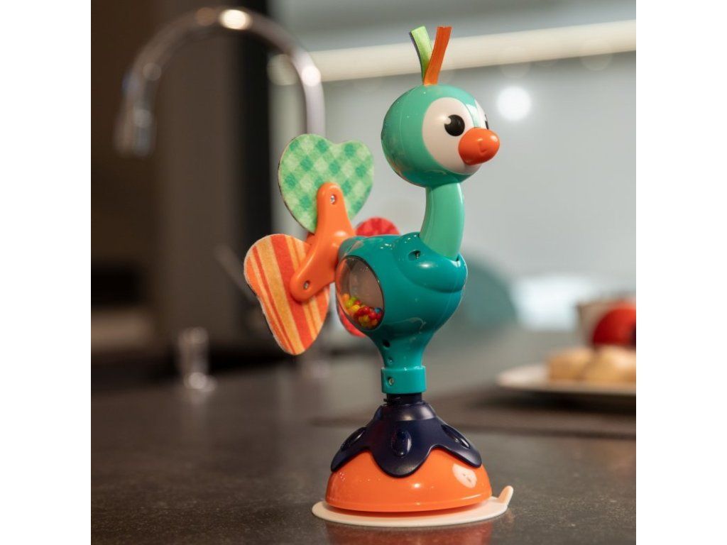 - prísavku možno upevniť na všetky typy hladkých povrchov, vrátane podnosov na jedlo, stolov a podláh