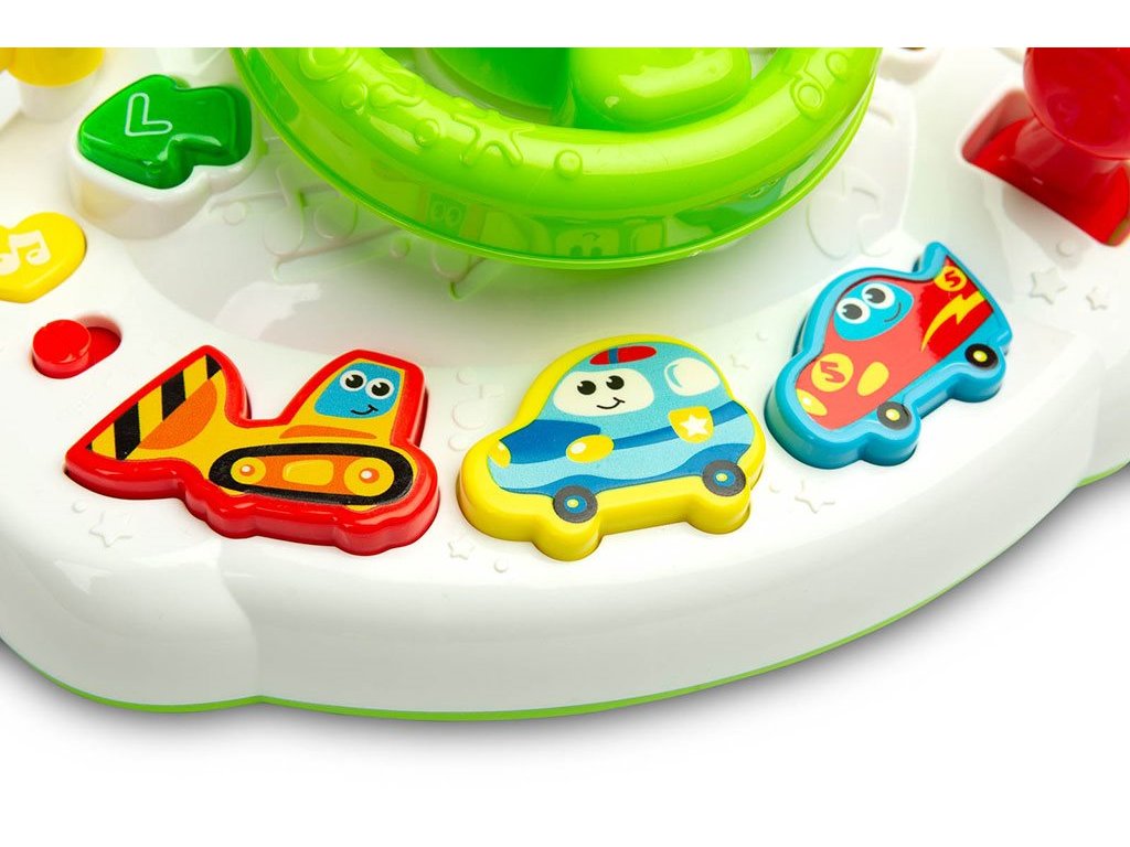 Vzdelávací volant od spoločnosti TOYZ je farebná hračka, ktorá ušetrí čas vášho batoľaťa. Panel volantu obsahuje tlačidlá a svetlá, ktoré spolupracujú s reproduktorom, ktorý vydáva príjemné melódie a zvuky auta.