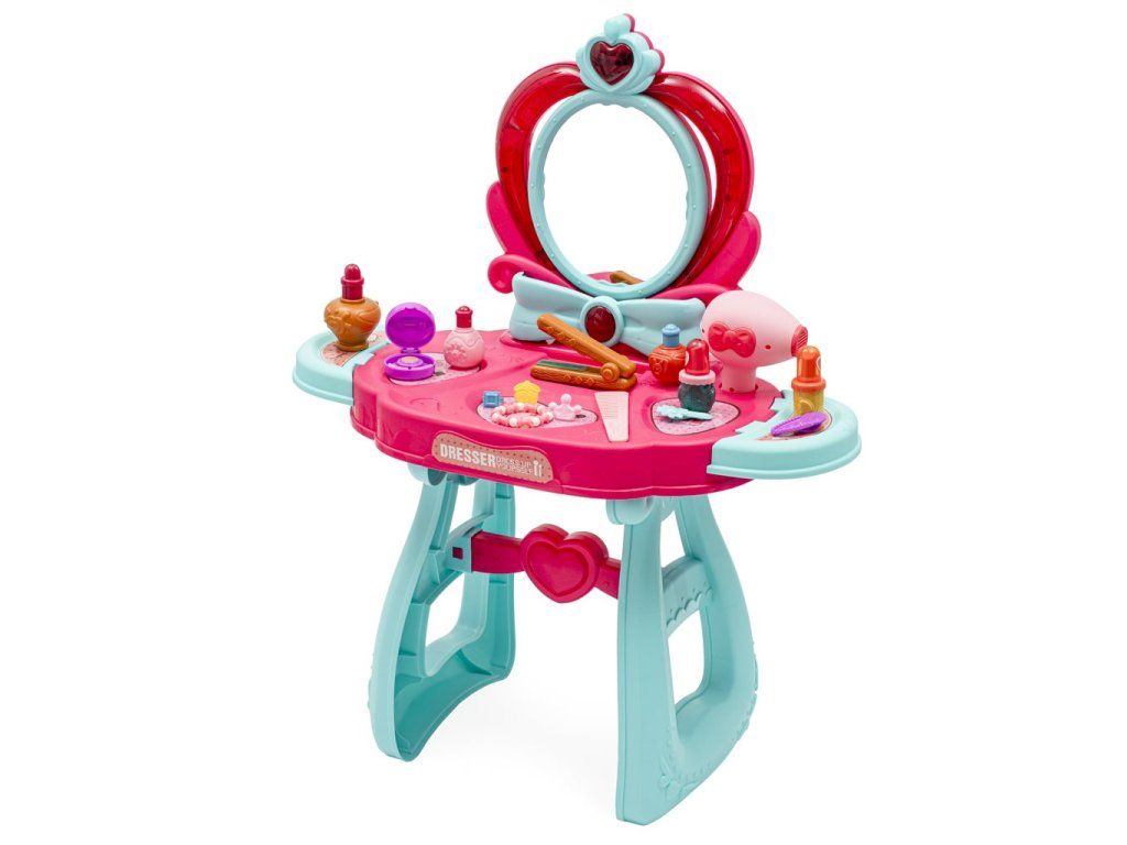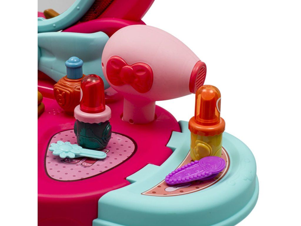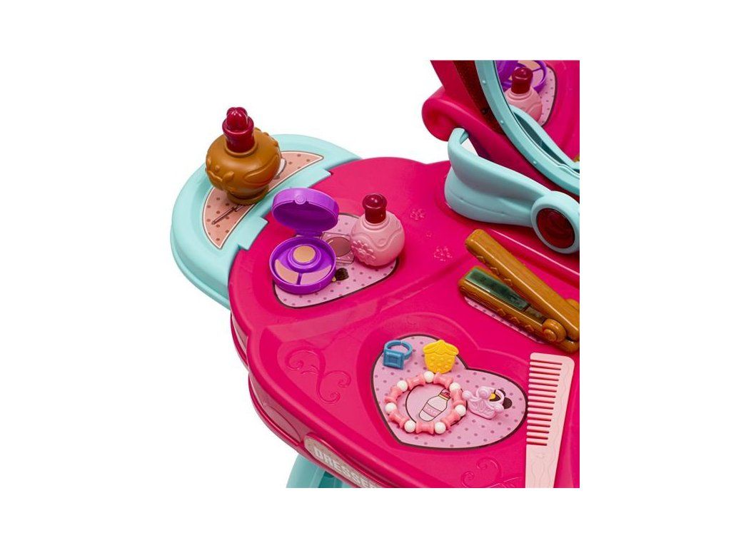 Detský toaletný stolík obsahuje aj kozmetické modely. Obsahuje sušič vlasov, hrebeň, tri laky na nechty, tri prstene, dve kvetiny do vlasov, dve rúže, dva náramky, náhrdelník a nálepku. Súčasťou je aj kúzelná palička, stlačením jej tlačidla sa počas prehrávania hudby otvorí zrkadlo. Stolík je vybavený zásuvkou.