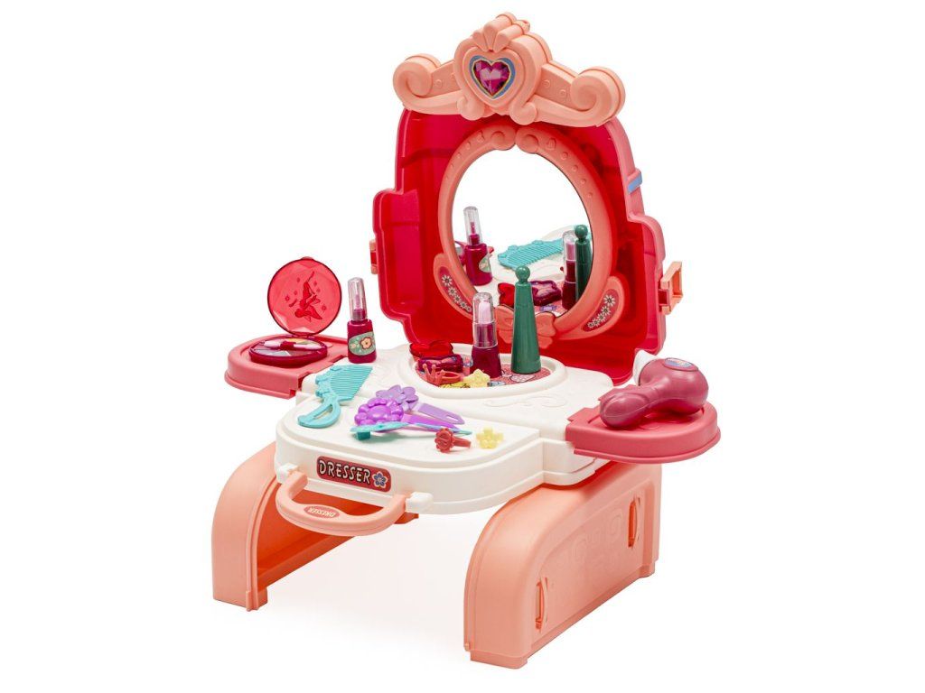 Detský kozmetický salón v batohu obsahuje makety kozmetických výrobkov, zrkadlo a mnoho ďalšieho. Tento batoh určite poteší všetky malé princezné.