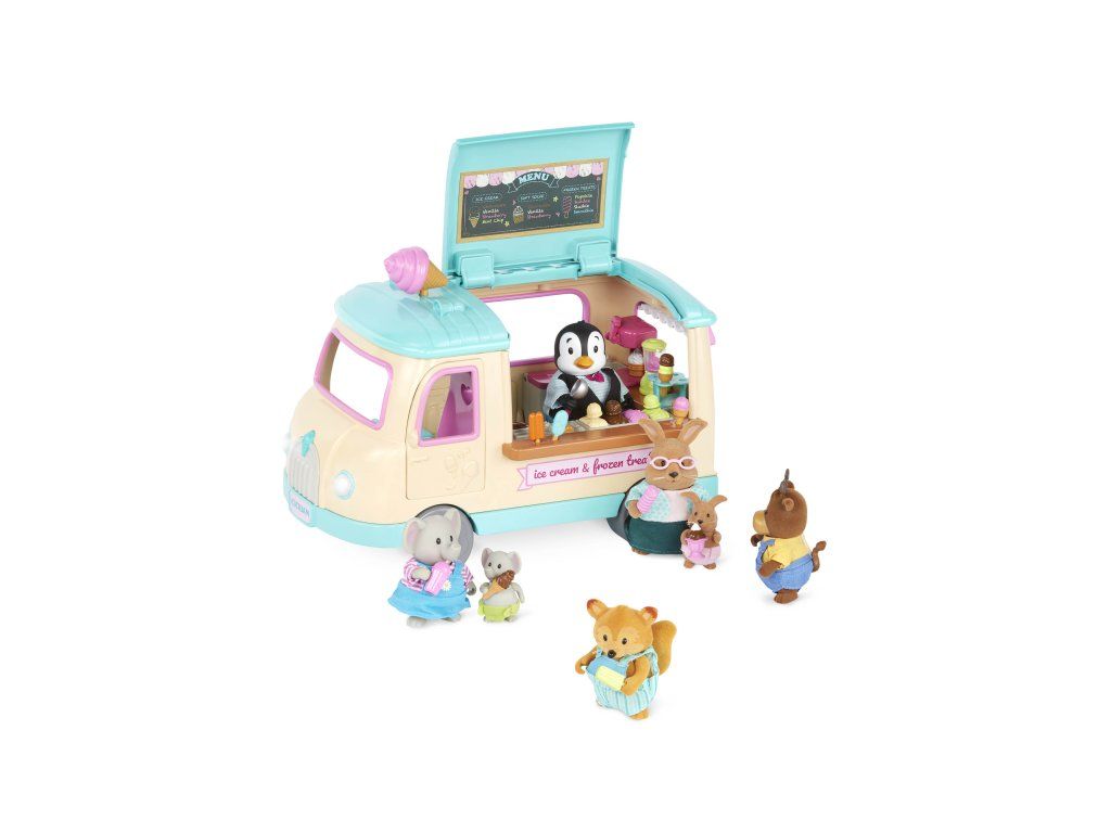 Dodávka so zmrzlinou priváža obyvateľom mestečka Honeysuckle Hollow každý letný deň zmrzlinu, nanuky aj mliečne koktaily vlastnej výroby. Až budete vchádzať do mestečka, nezabudnite stlačiť volant, ktorým sa rozsvietia svetlá a ozve sa zvuk, aby všetci vedelí, že idete! Postavičky zvieratiek nie sú súčasťou balenia, predávajú sa samostatne.