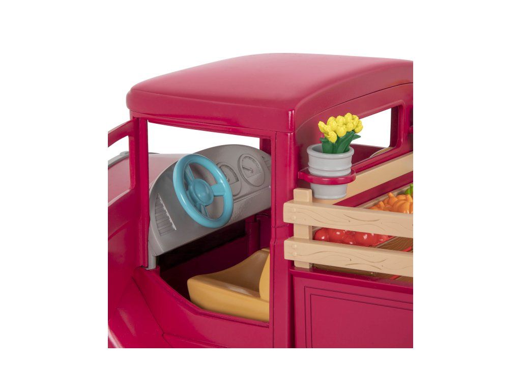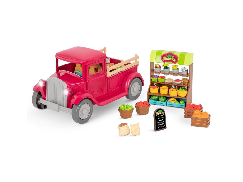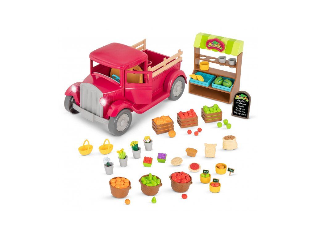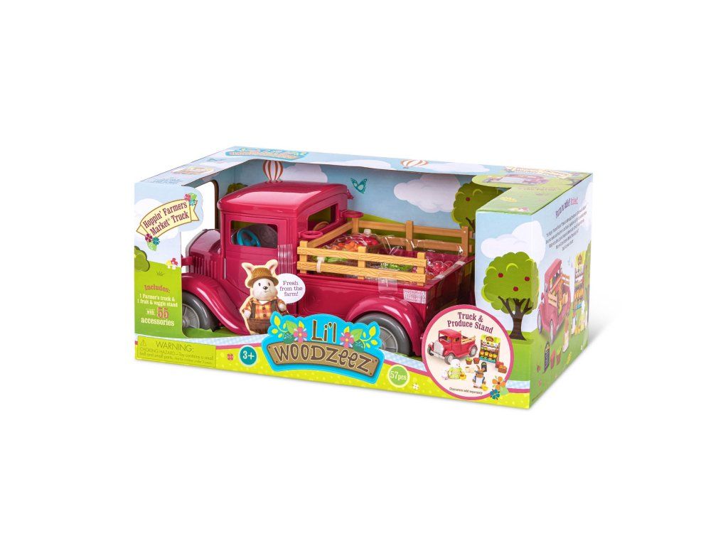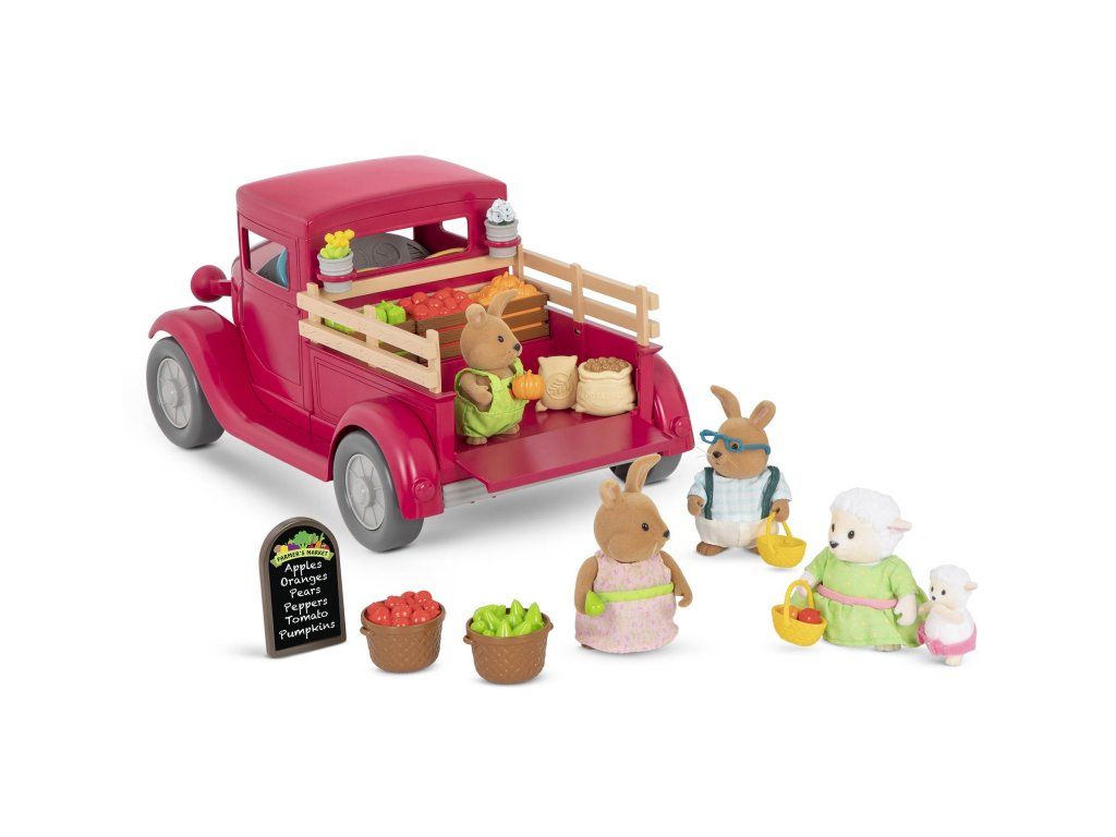 Farmársky pick-up priváža obyvateľom mestečka Honeysuckle Hollow každý deň čerstvú zeleninu a ovocie zozbierané ráno na farme.Vystavte všetko na stánku a pravidelne dopĺňajte stánok tovarom, ktorý sa vypredá! A až budete odchádzať z trhu, nezabudnite stlačiť volant, ktorým sa rozsvietia svetlá a ozve sa zvuk, aby všetci vedelí, že idete! Postavičky zvieratiek nie sú súčasťou balenia, predávajú sa samostatne.