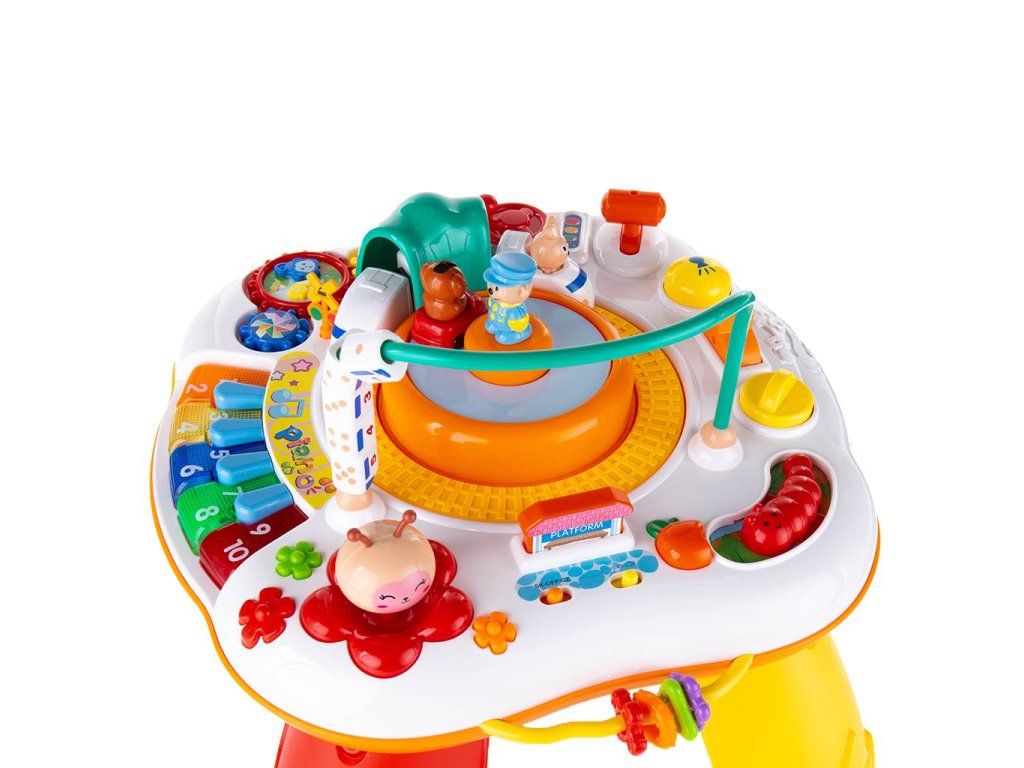 Hovoriaci a hrajúci interaktívný stolček New Baby s jazdiacim vláčikom je určený deťom od 10 mesiacov a obsahuje veľké množstvo funkcií, ktoré vaše dieťa zabaví na dlho. Stolček prehrá 12 melódiií a 4 pesničky, dialógy, vety a slová v slovenčine alebo češtine. Stolček je možné používať zložený na nohách, alebo možno nohy odmontovať pre jednoduché prevážanie, alebo použitie na cestách.