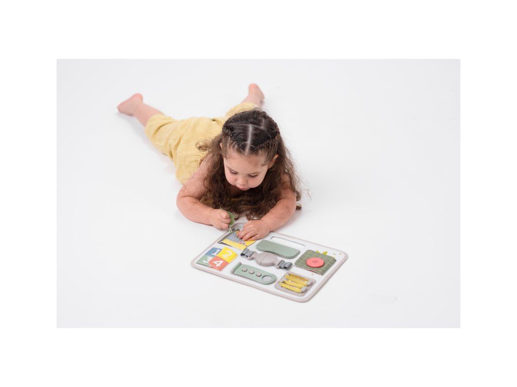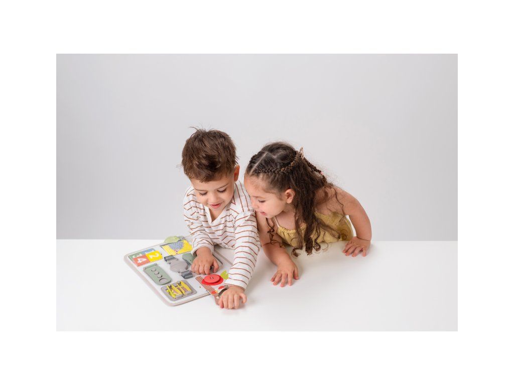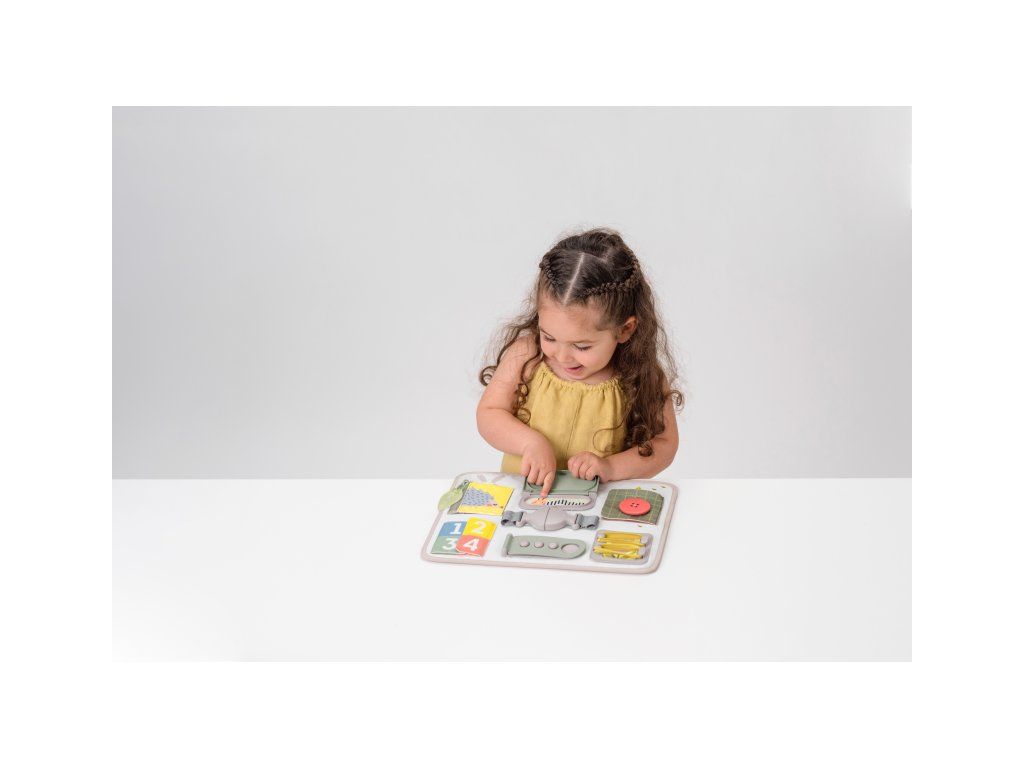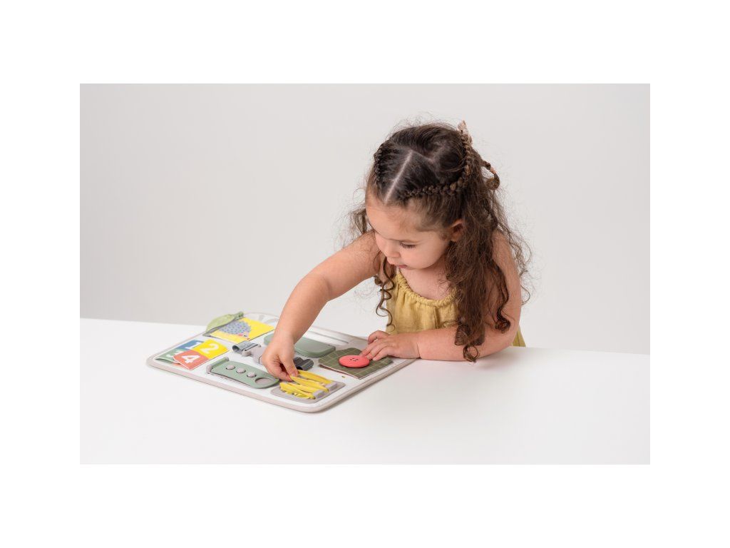 Originálny hrací pult ponúka množstvo rôznorodých aktivít, medzi ktorými nájdete zips, veľký gombík, suché zipsy šnúrky, pracku, pútko a mnoho ďalšieho. Zapínaním a rozopínaním si deti precvičujú jemnú motoriku aj koordináciu oko-ruka. Aktivity zároveň podporujú rozvoj kreativity dieťaťa aj jeho schopnosti riešiť problémy.