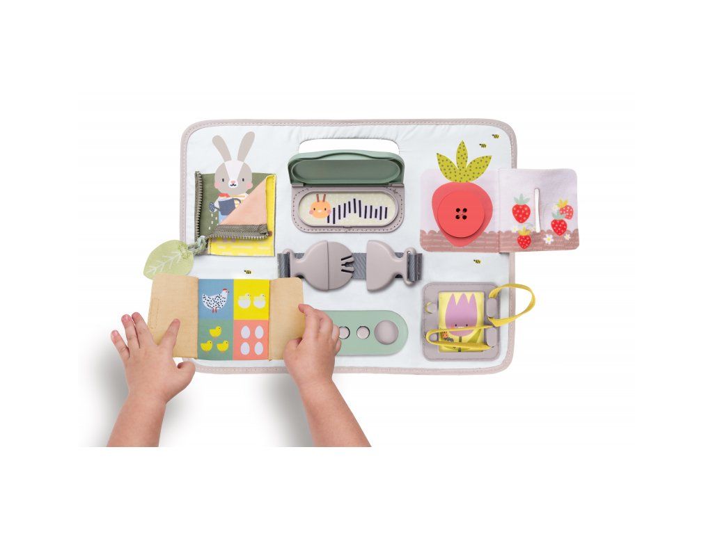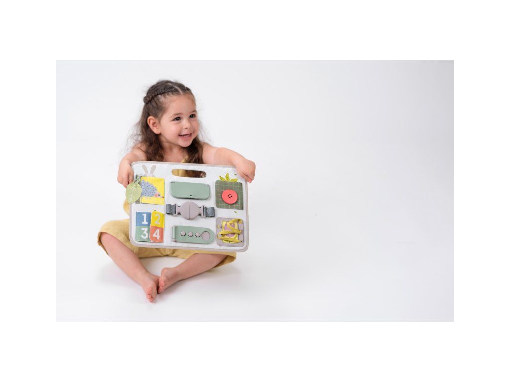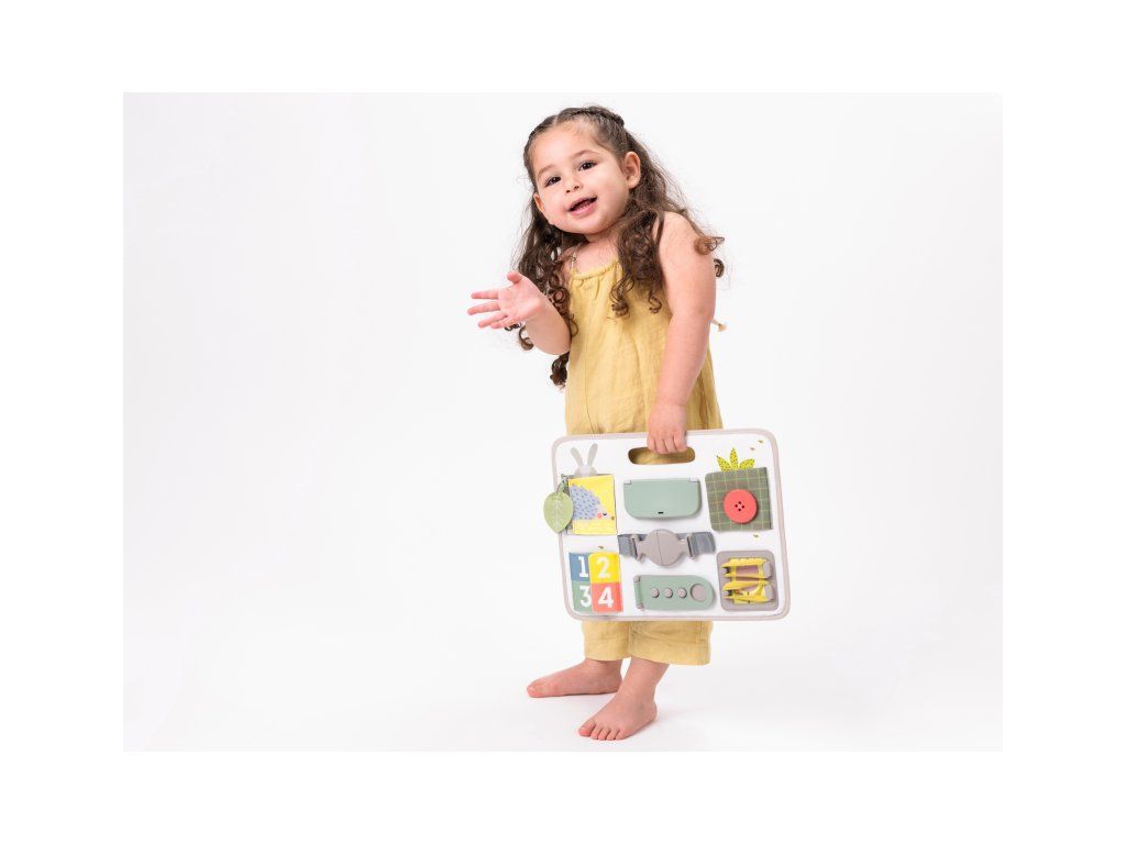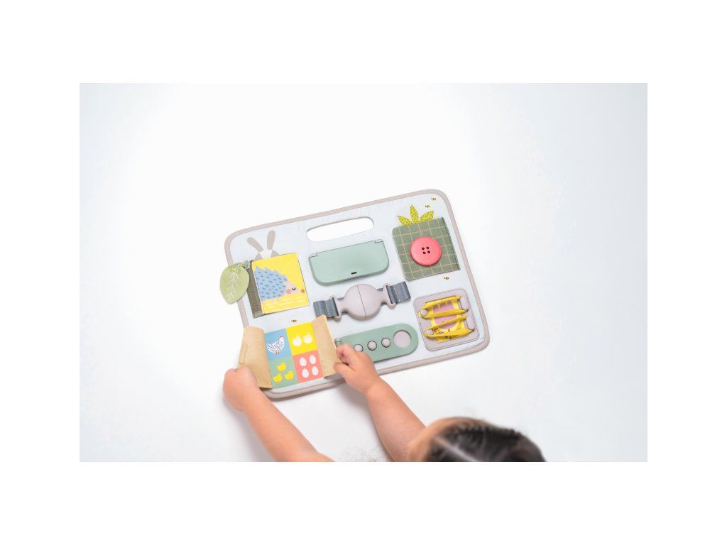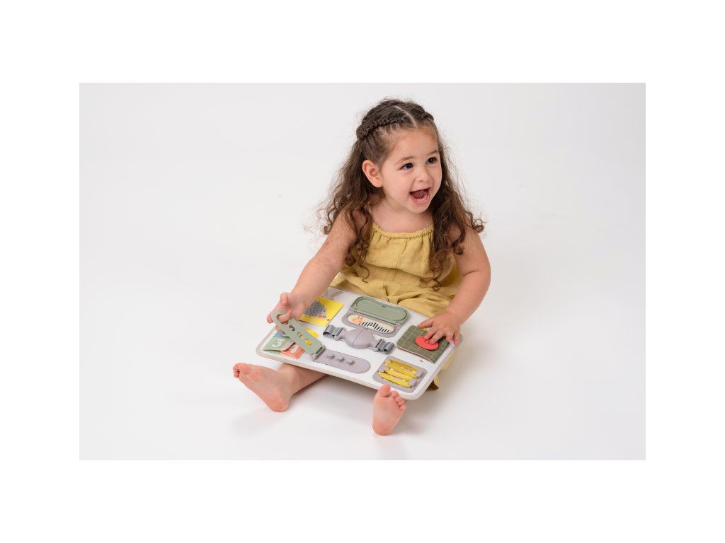Originálny hrací pult ponúka množstvo rôznorodých aktivít, medzi ktorými nájdete zips, veľký gombík, suché zipsy šnúrky, pracku, pútko a mnoho ďalšieho. Zapínaním a rozopínaním si deti precvičujú jemnú motoriku aj koordináciu oko-ruka. Aktivity zároveň podporujú rozvoj kreativity dieťaťa aj jeho schopnosti riešiť problémy.