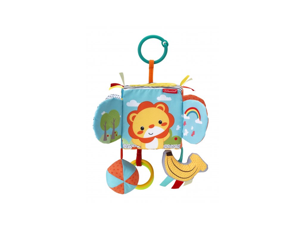 Závesná textilná hračka s krásnymi ilustráciami zvieratiek ponúka množstvo rôznorodých aktivít na skúmanie a pozorovania vrátane bezpečného zrkadla. Jednotlivé časti šuštia, cinkajú či hrkajú. Plastový krúžok umožňuje ľahké zavesenie na kočík, postieľku či autosedačku.