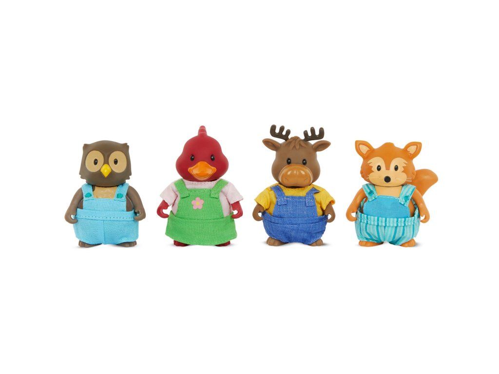 Súprava obsahuje 4 postavičky zvieratiek. Ďalšie postavičky zvieratiek, domčeky, obchody, dopravné prostriedky a pod. sa predávajú samostatne. Všetky postavičky a doplnky Li'l Woodzeez sú navzájom kompatabilné a umožnia vám vytvoriť originálne mestečko pre nekonečnú hru rozvíjajúcu fantáziu a kreativitu vášho dieťaťa.