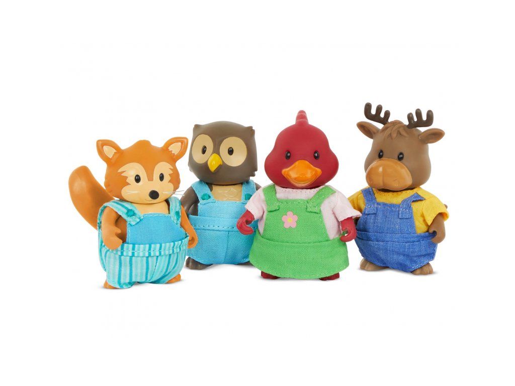 Skupinu kamarátov z lesa tvorí kardinál Poppy, los Willie, líška Howie a sova Pete. Postavičky sú súčasťou kolekcie postavičiek zvieratiek Li'l Woodzeez Friendz Club.