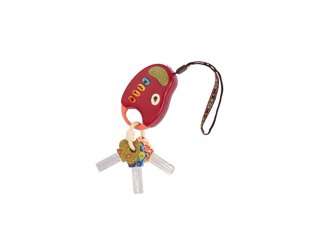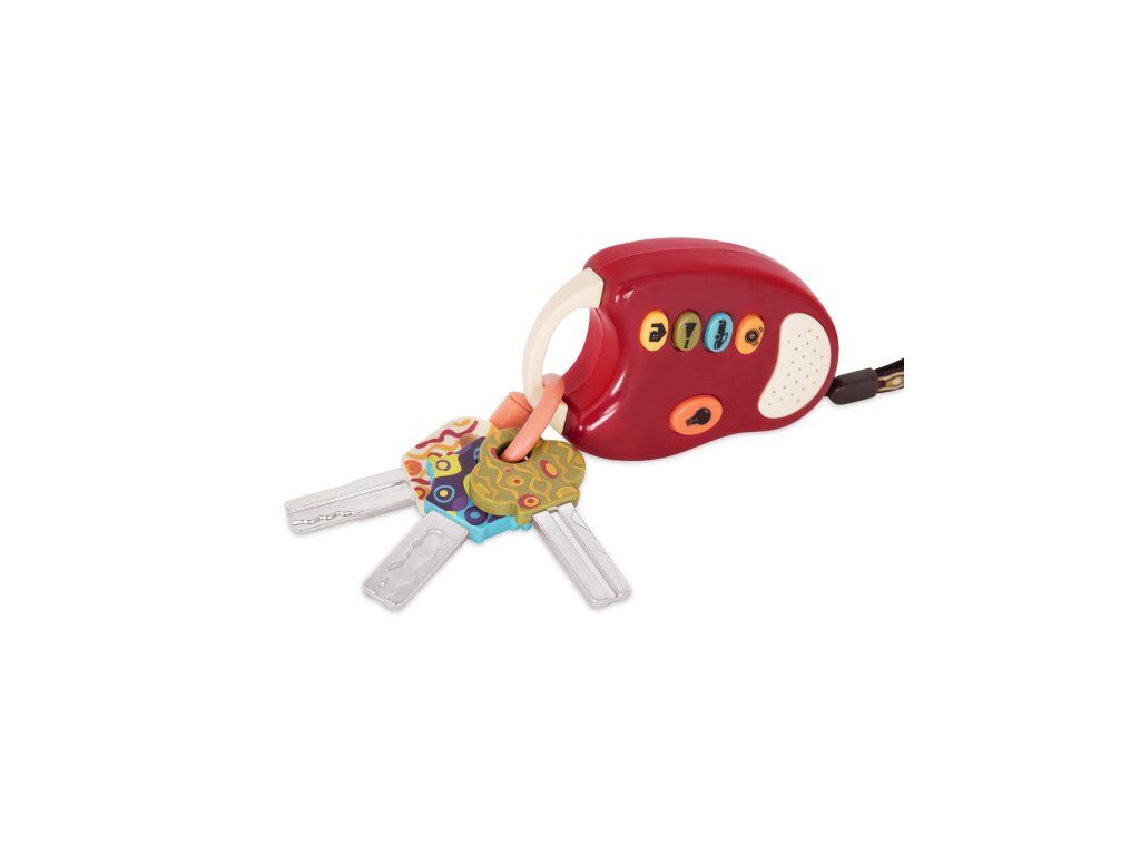 Kľúčiky ako od ozajstného auta so štyrmi rôznymi zvukmi a svetielkom. Odolný materiál je bezpečný pre skúmanie rukami i ústami.