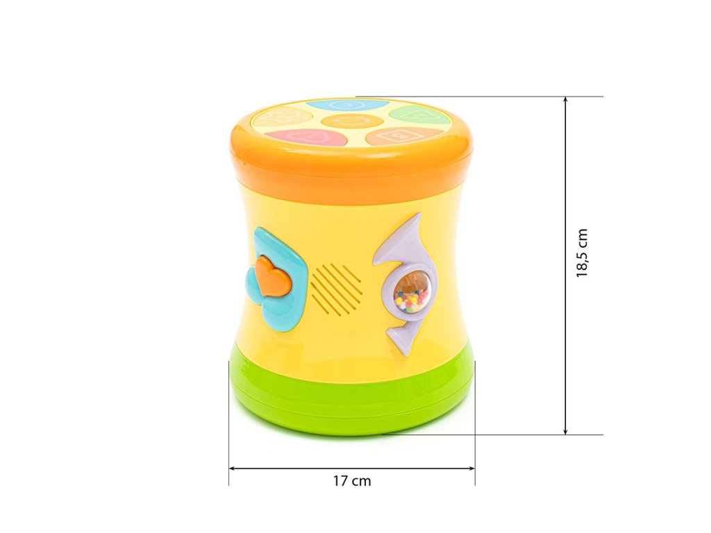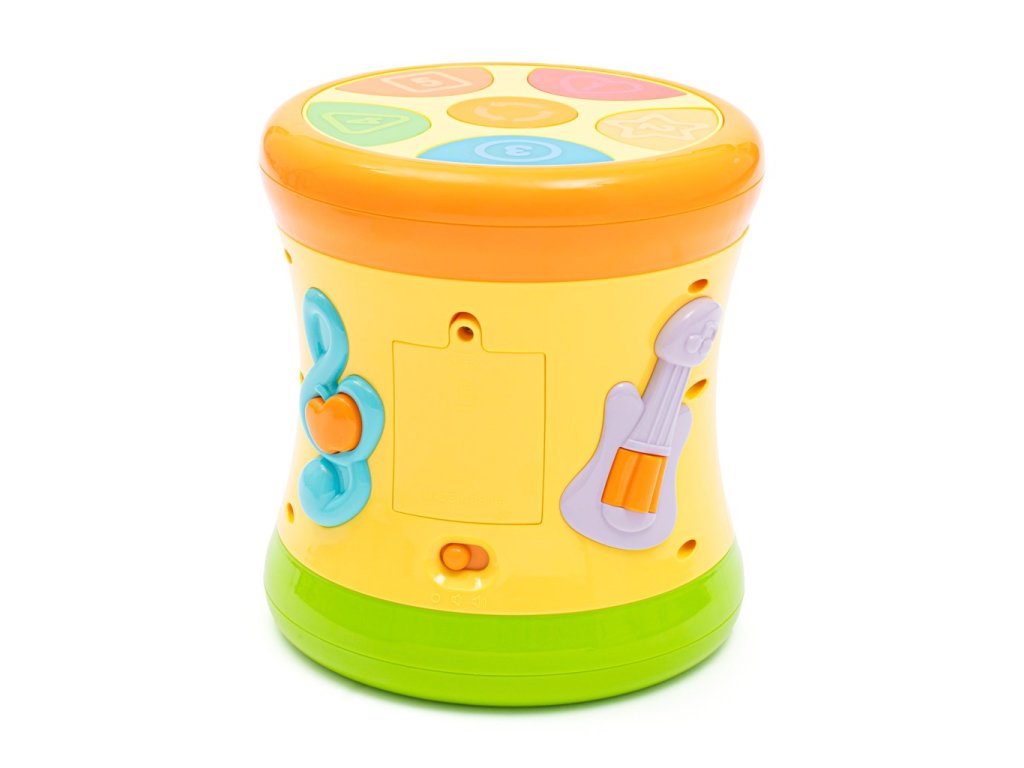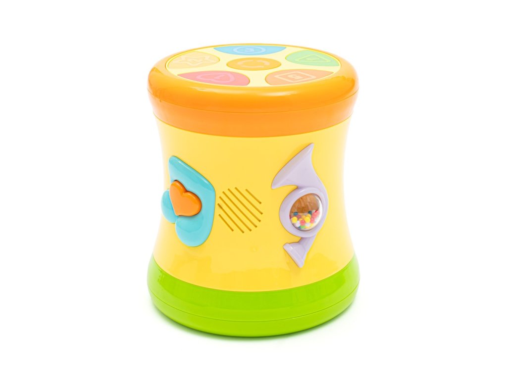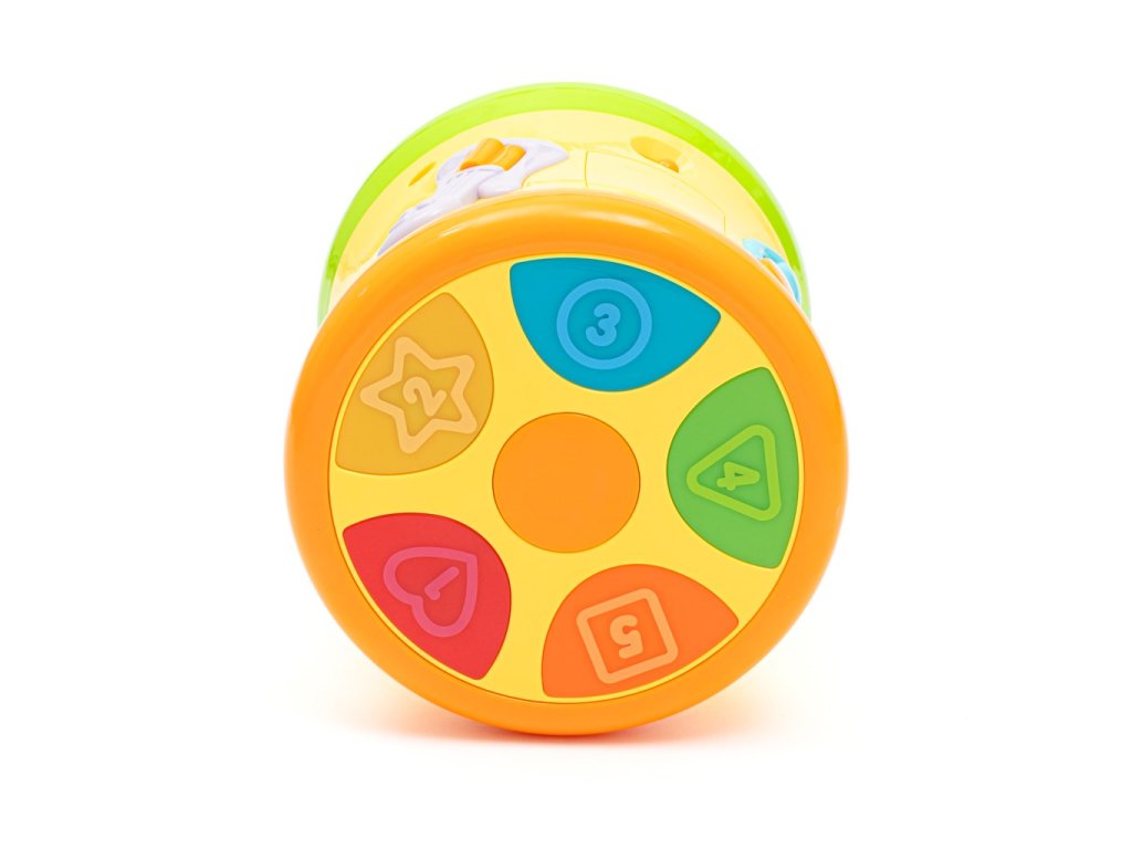 Veselé zvuky bubna – povzbudzujú k aktívnemu objavovaniu zvukov a rozvíjajú koordináciu ruka-oko.