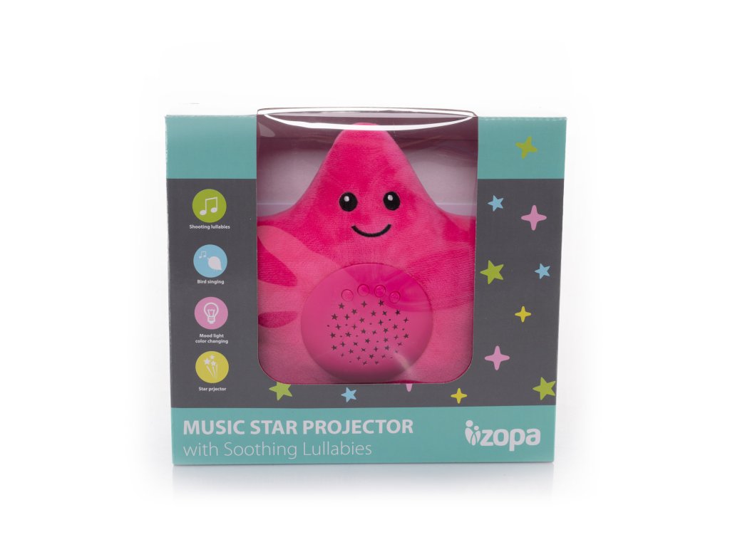 Projektor a hudba fungujú po vložení bateriek a majú automatické vypínanie.