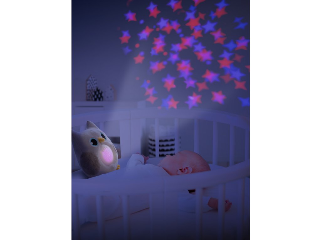 Ak by ani hviezdne nebo nestačilo k pokojnému zaspávaniu, zvieratká deťom zahrajú ľúbivé melódie alebo napodobní príjemné zvuky prírody, ako je štebot vtáčikov. Najmenšie bábätká ocenia zvuk pripomínajúci tlkot srdca tak, ako ho počuli v brušku u mamičky.