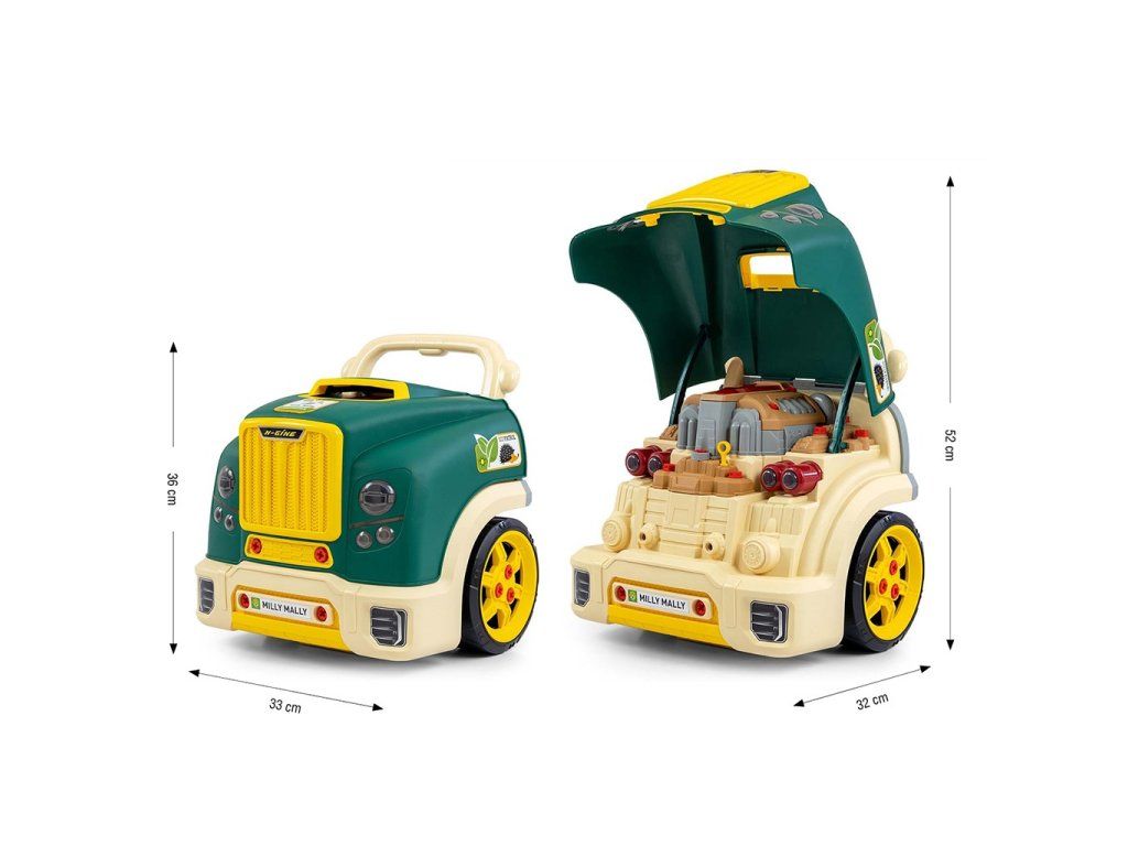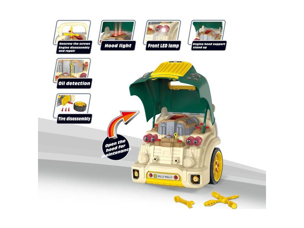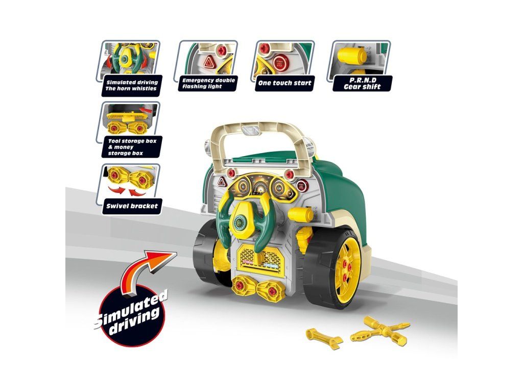 Hračka obsahuje svetelné a zvukové efekty, ktoré dodávajú hernému zážitku vzrušenie a realizmus. Vďaka súprave náradia a pohyblivým častiam môžu deti opravovať autá, meniť pneumatiky, uťahovať skrutky a učiť sa základy mechaniky prostredníctvom akcie. Rozvíja manuálne zručnosti a logické myslenie a podporuje učenie sa hrou.