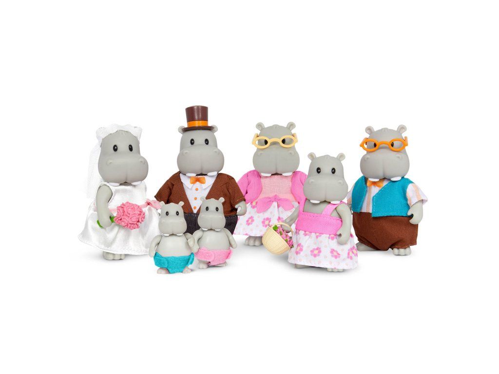 Sada obsahuje 7 figúrok hrochov. Ostatné figúrky zvierat, domy, obchody, vozidlá atď. sa predávajú samostatne. Všetky figúrky a príslušenstvo Li'l Woodzeez sú navzájom kompatibilné a umožňujú vám vytvoriť originálne mesto pre nekonečnú hru, ktorá rozvíja fantáziu a kreativitu vášho dieťaťa.