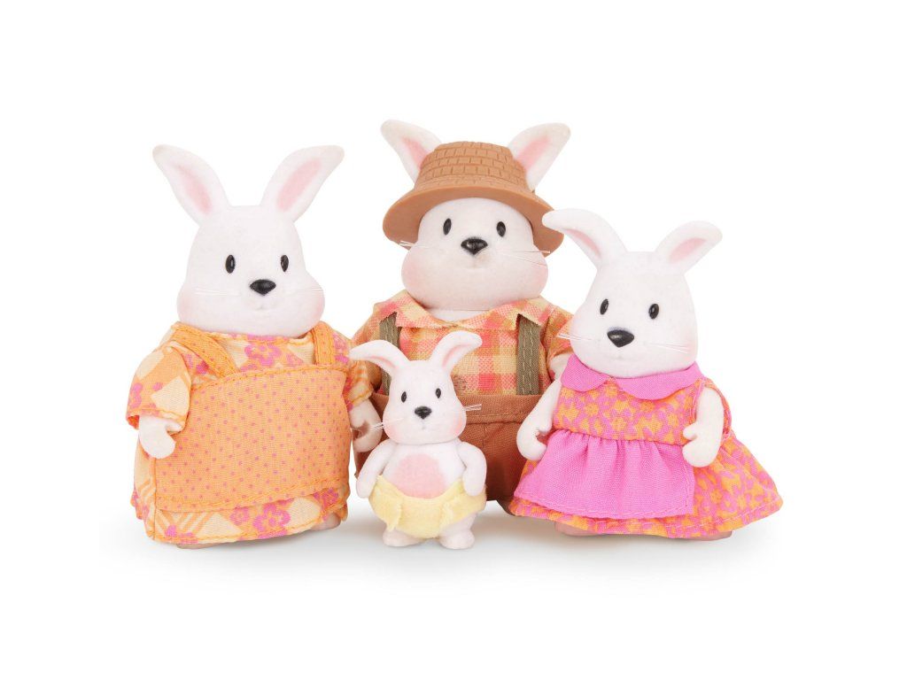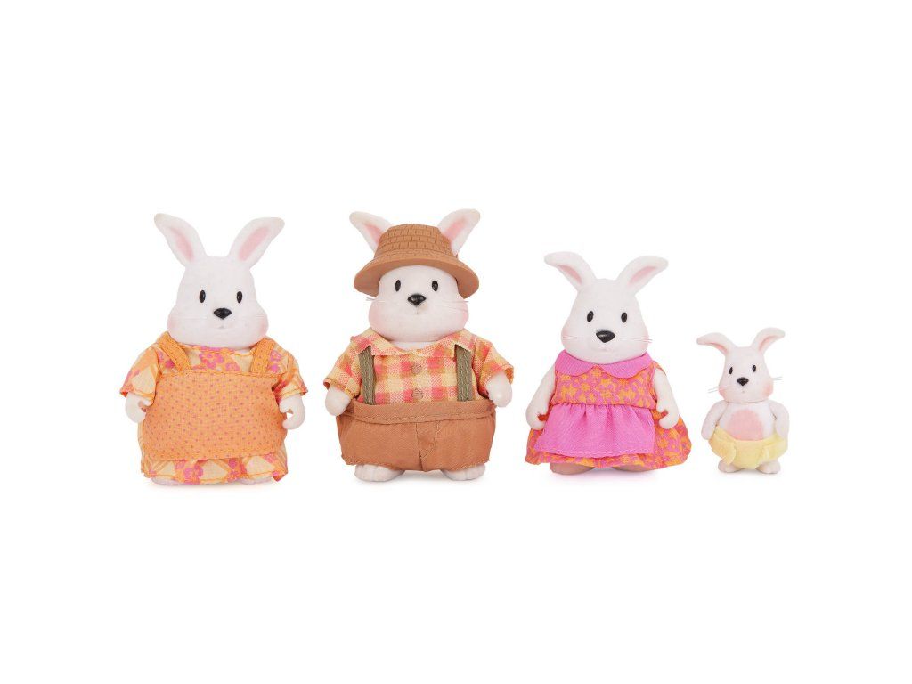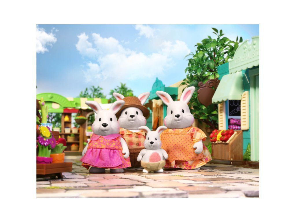 Súprava obsahuje 4 postavičky králikov. Ďalšie postavičky zvieratiek, domčeky, obchody, dopravné prostriedky a pod. sa predávajú samostatne. Všetky postavičky a doplnky Li'l Woodzeez sú navzájom kompatabilné a umožnia vám vytvoriť originálne mestečko pre nekonečnú hru rozvíjajúcu fantáziu a kreativitu vášho dieťaťa.