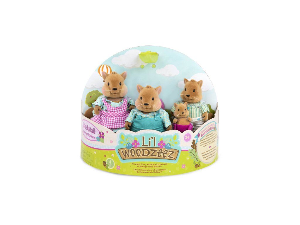 Sada obsahuje 4 postavičky veveričiek. Ďalšie postavičky zvieratiek, domčeky, obchody, dopravné prostriedky a pod. sa predávajú samostatne. Všetky postavičky a doplnky Li'l Woodzeez sú navzájom kompatabilné a umožnia vám vytvoriť originálne mestečko pre nekonečnú hru rozvíjajúcu fantáziu a kreativitu vášho dieťaťa.