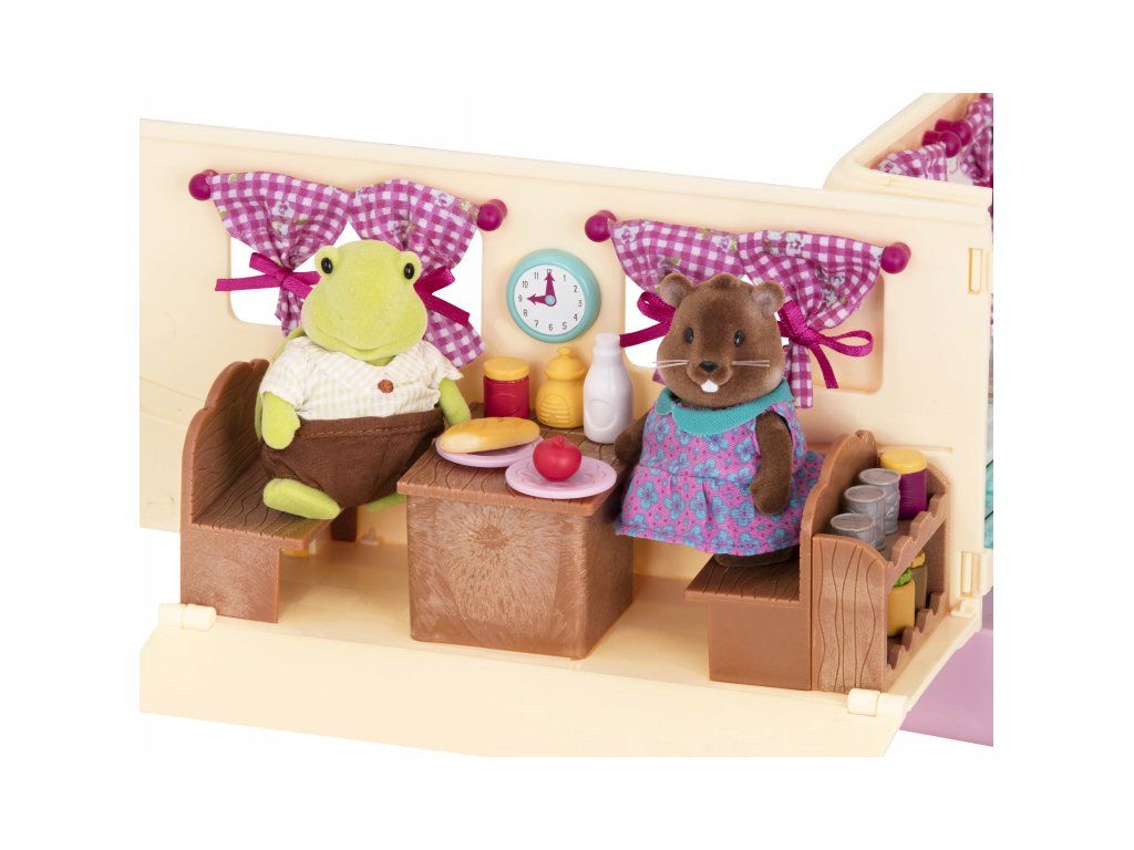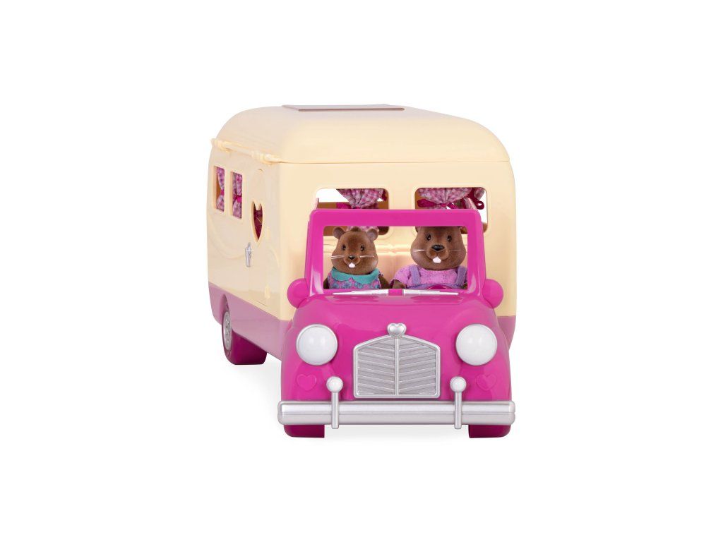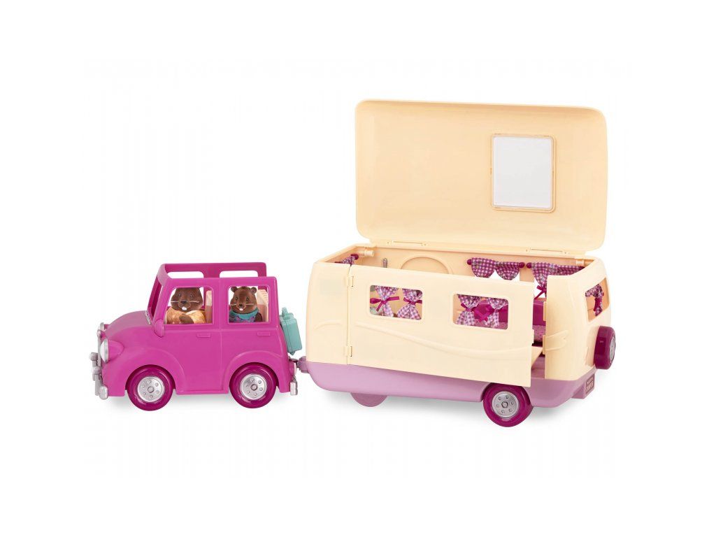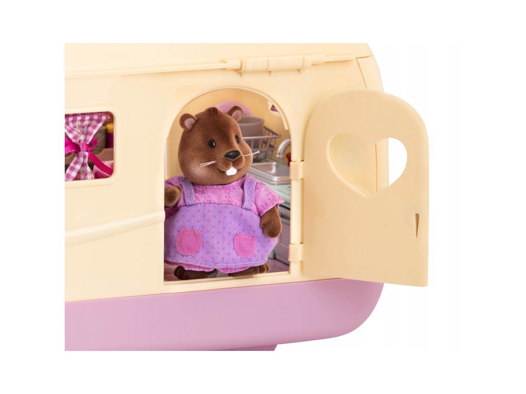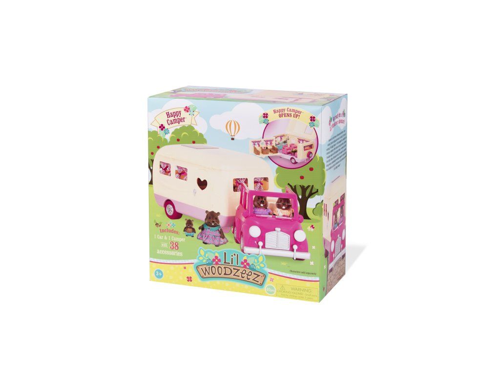 Sada na kempovanie Happy Camper obsahuje všetko, čo rodina z mestečka Honeysuckle Hollow môže potrebovať na výlet do prírody. Obytný príves ponúka pohodlné spanie aj priestor na varenie a stolovanie. Stačí len vybrať rodinku zo samostatne predávaných postavičiek zvieratiek Li'l Woodzeez, posadiť ju do auta a dovolenka v prírode môže začať!