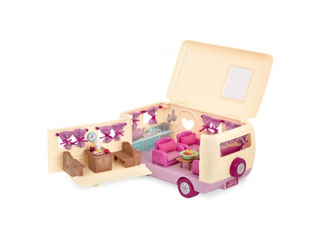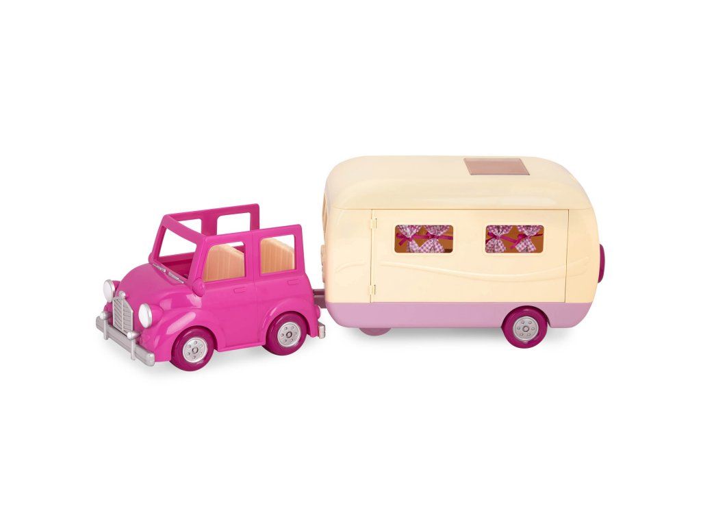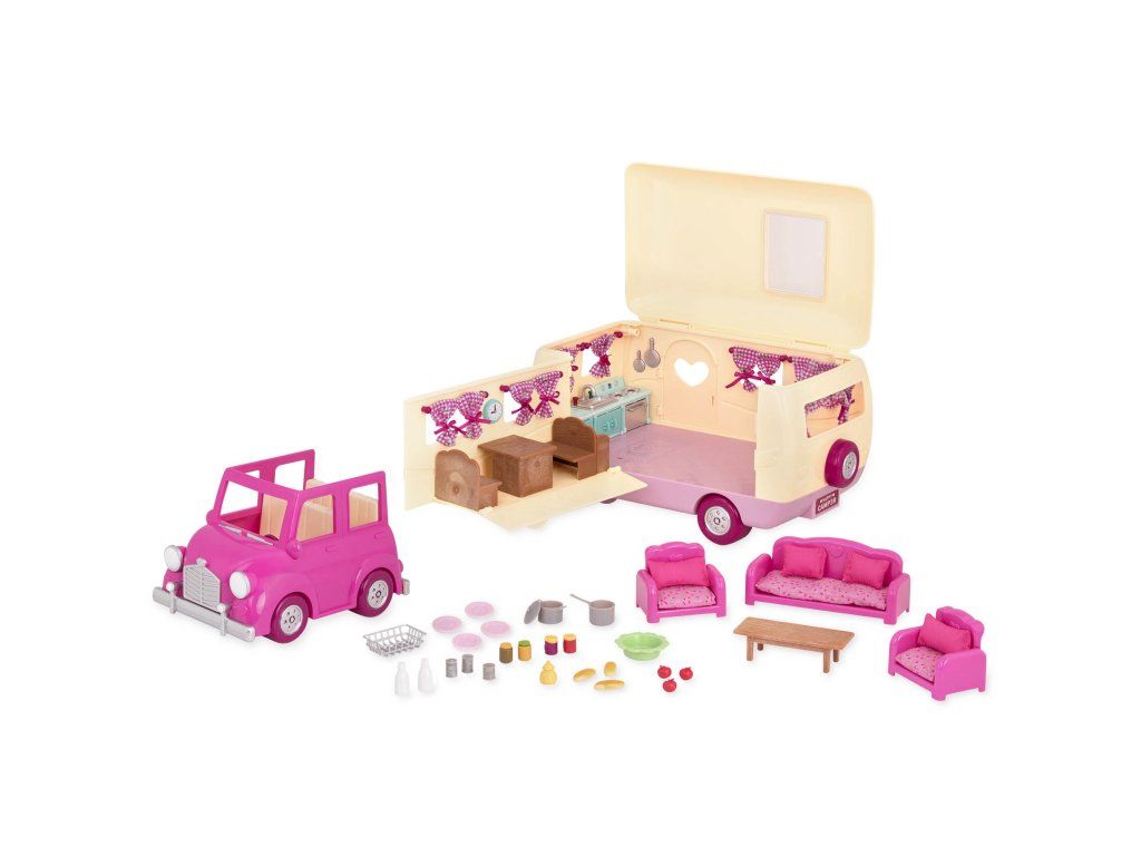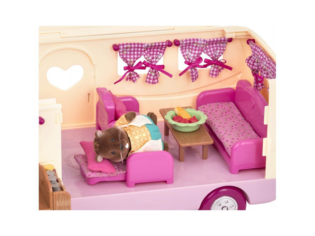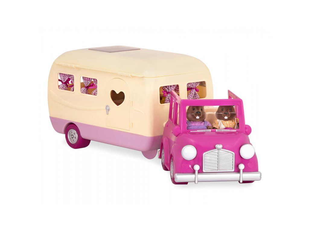 Sada na kempovanie Happy Camper obsahuje všetko, čo rodina z mestečka Honeysuckle Hollow môže potrebovať na výlet do prírody. Obytný príves ponúka pohodlné spanie aj priestor na varenie a stolovanie. Stačí len vybrať rodinku zo samostatne predávaných postavičiek zvieratiek Li'l Woodzeez, posadiť ju do auta a dovolenka v prírode môže začať!