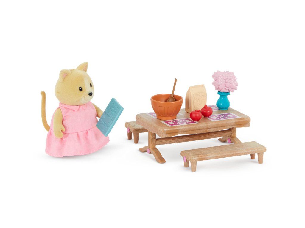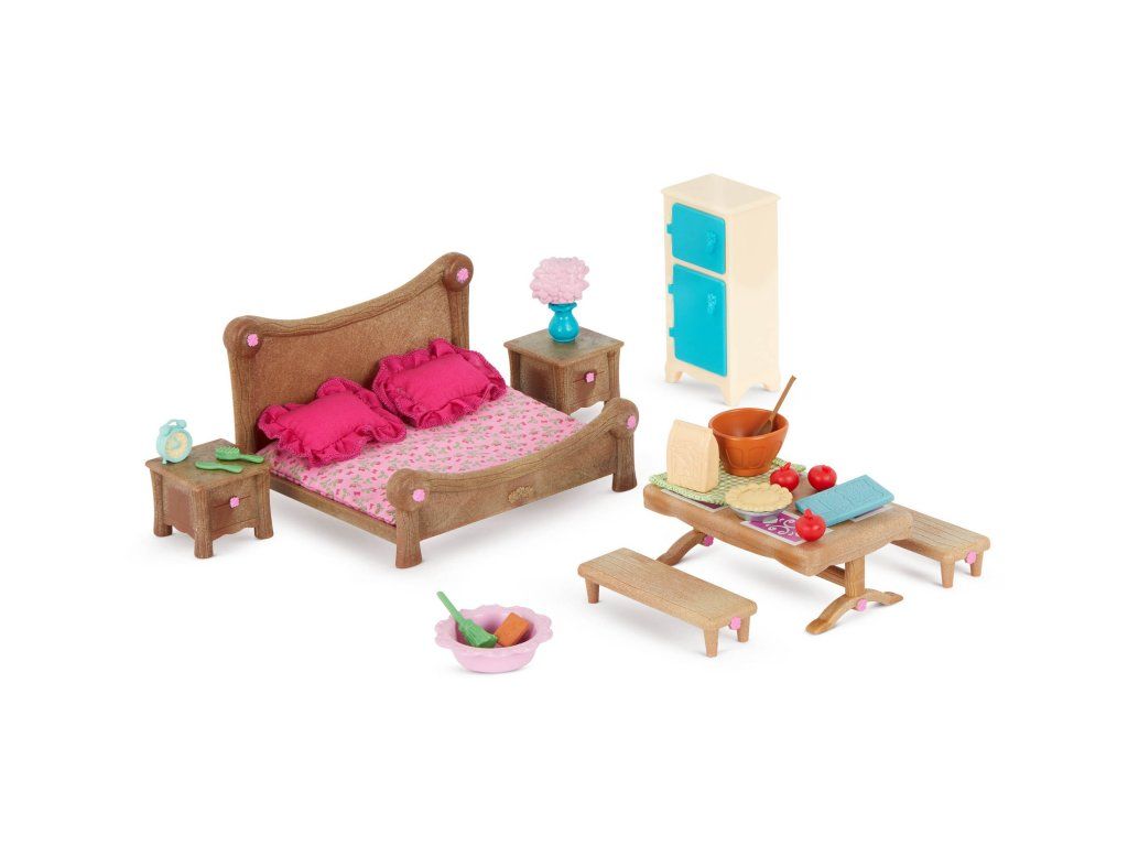 Sada nábytku vám umožní vybaviť spálňu a jedáleň v domčeku pre postavičky zvieratiek Li'l Woodzeez. Až sa po dobrej večeri budú zvieratká ukladať na spánok do pohodlnej postele, nezabudnite nastaviť budíček!Domček aj postavičky zvieratiek sa predávajú samostatne.