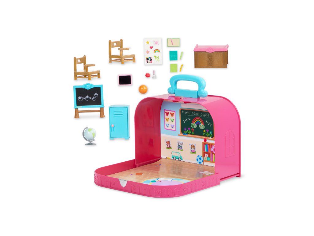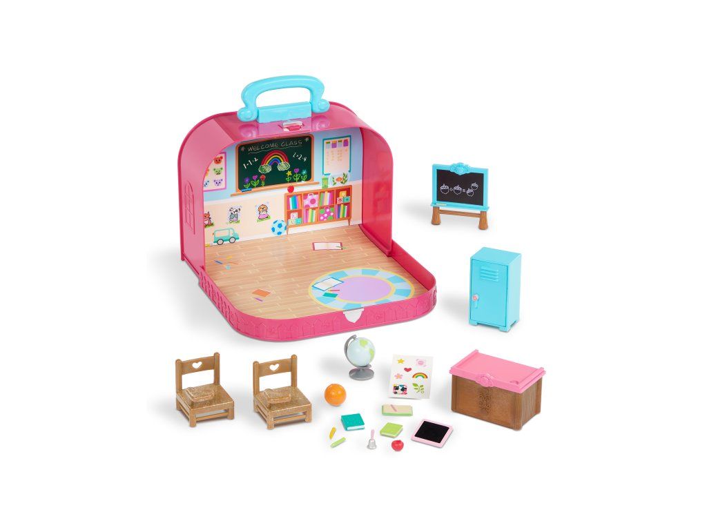 Cestovná sada hračiek Li'l Woodzeeze v praktickom kufríku umožní vášmu dieťaťu hrať sa kdekoľvek na dovolenke, výletoch či počas víkendu u starých rodičov. Kufrík sa po otvorení premení na bohato vybavenú školskú triedu s nábytkom a doplnkami.