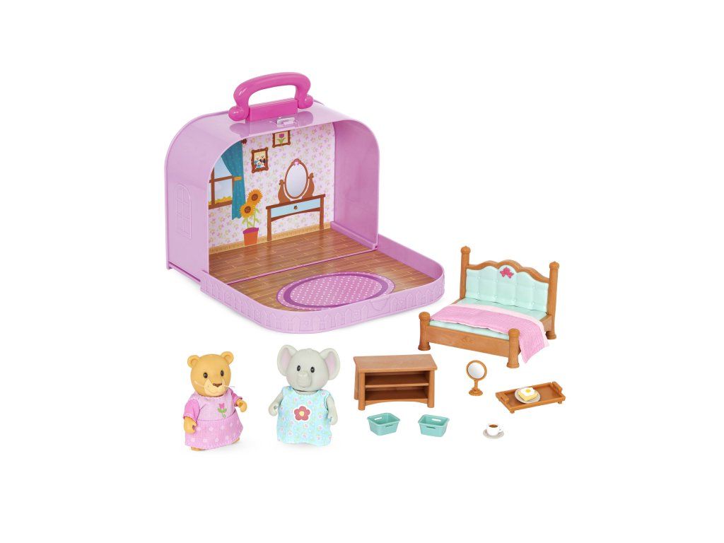 Cestovná sada hračiek Li'l Woodzeeze v praktickom kufríku umožní vášmu dieťaťu hrať sa so svojimi obľúbenými postavičkami kdekoľvek na dovolenke, výletoch či počas víkendu u starých rodičov. Kufrík sa po otvorení premení na bohato vybavenú spálňu s nábytkom, doplnkami a postavičkami Levice Kya a slonice Lizz.
