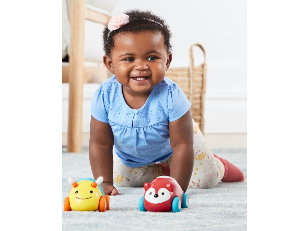 Roztomilé zvieratko na kolieskach plné pestrých farieb a pútavých textúr podporí zábavné dobrodružstvá bábätka pri plazení. Perfektná veľkosť pre malé ručičky. Stačí autíčko potiahnuť dozadu a pustiť a autíčko sa rozbehne.Vlastnosti: