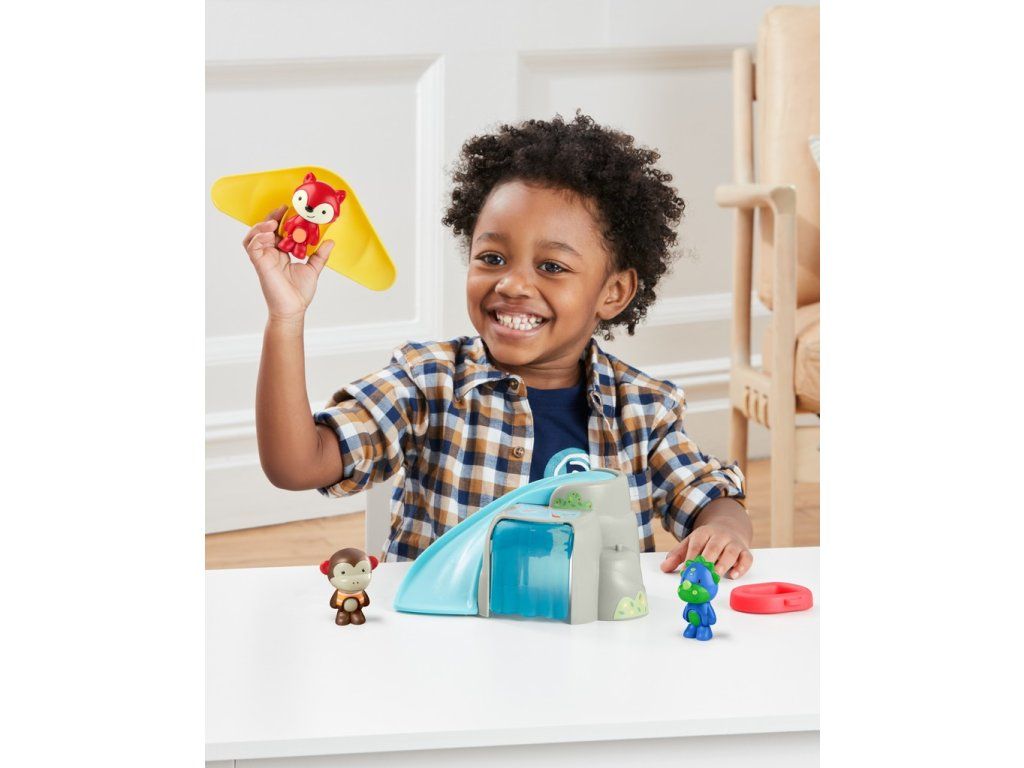 - hracia súprava v dizajne hôr, s tajnými dverami vodopádu, raftom a vzdušným klzákom