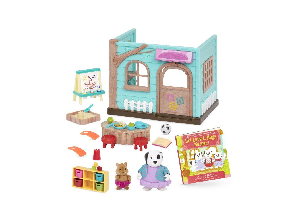 V škôlke Luvs & Hugs sa deti z mestečka Honeysuckle Hollow určite nebudú nudiť – zabavia sa na pieskovisku, maľovaním alebo hraním s kockami či loptou.Keď je čas na desiatu, majú na výber z bohatej ponuky občerstvenia. Súčasťou balenia sú dve postavičky zvieratiek - dalmatína Molly a mláďať veveričky Honeybun.