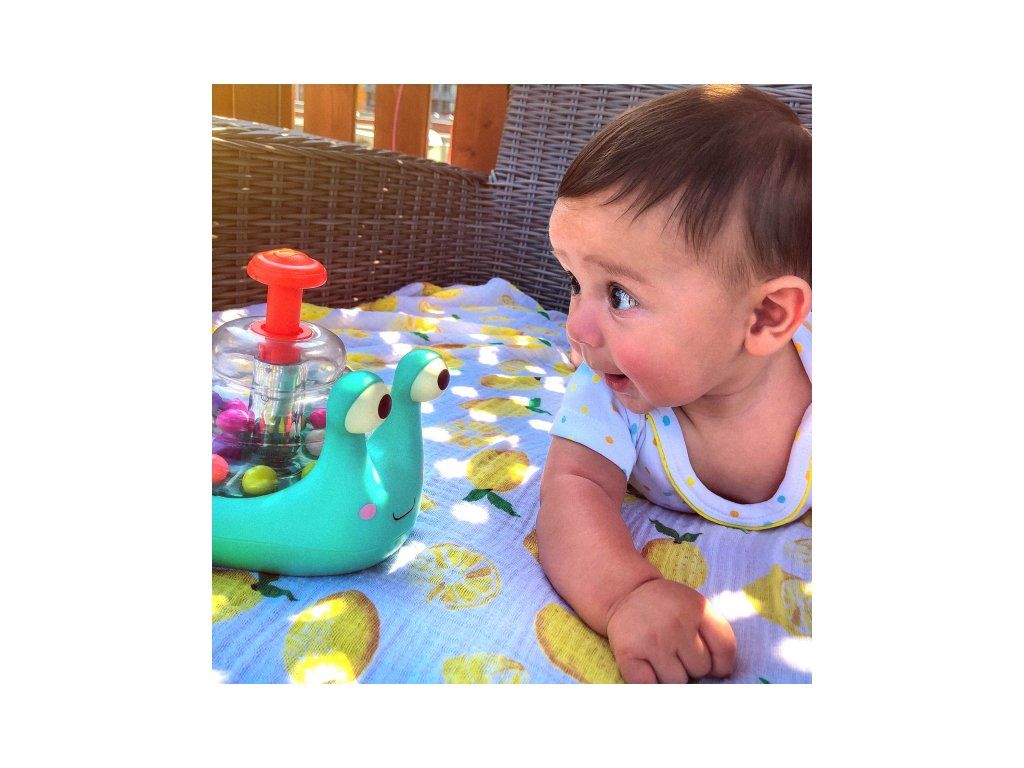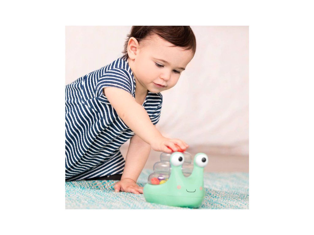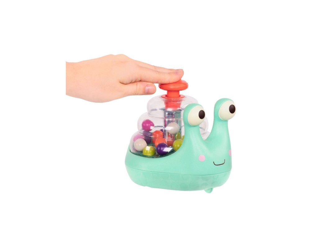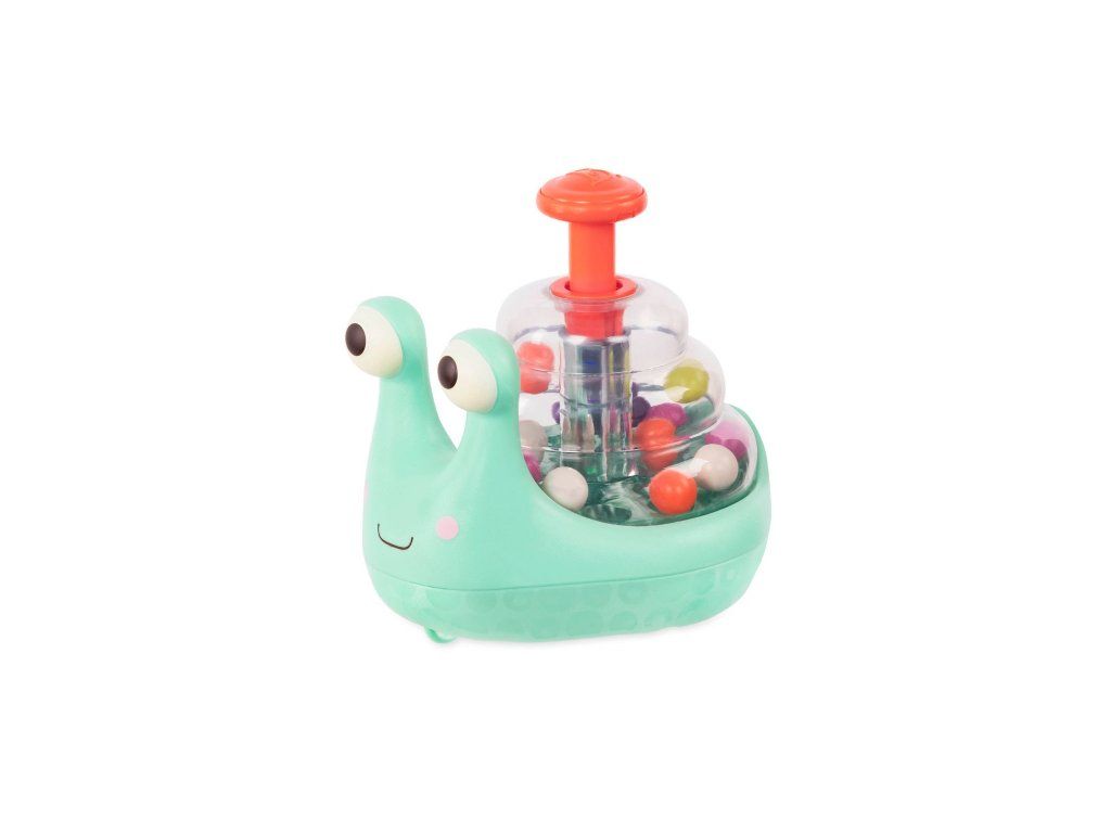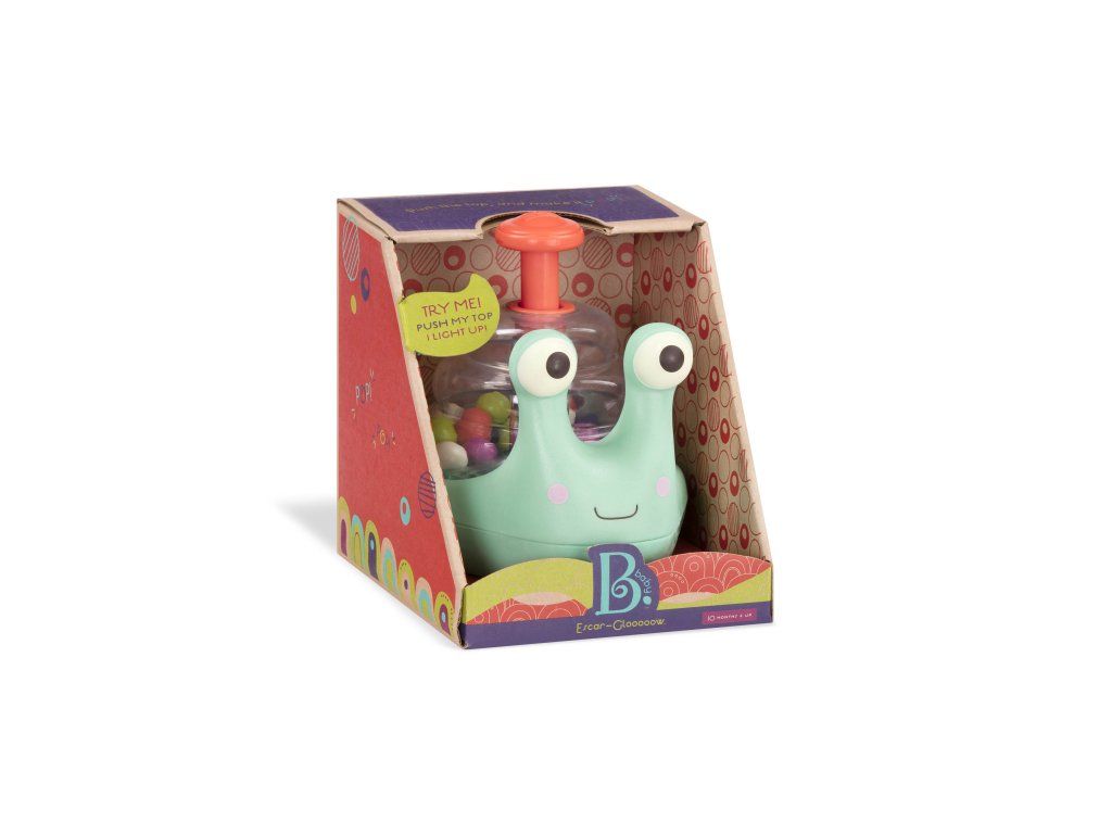Originálna hračka v podobe slimáka na kolieskach s priehľadnou ulitou plnou farebných guličiek, ktoré po stlačení páčky lietajú vo vnútri ulity dookola podobne ako popcorn. Pre ešte väčší efekt vo vnútri zároveň blikajú farebné svetielka.