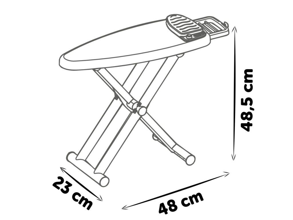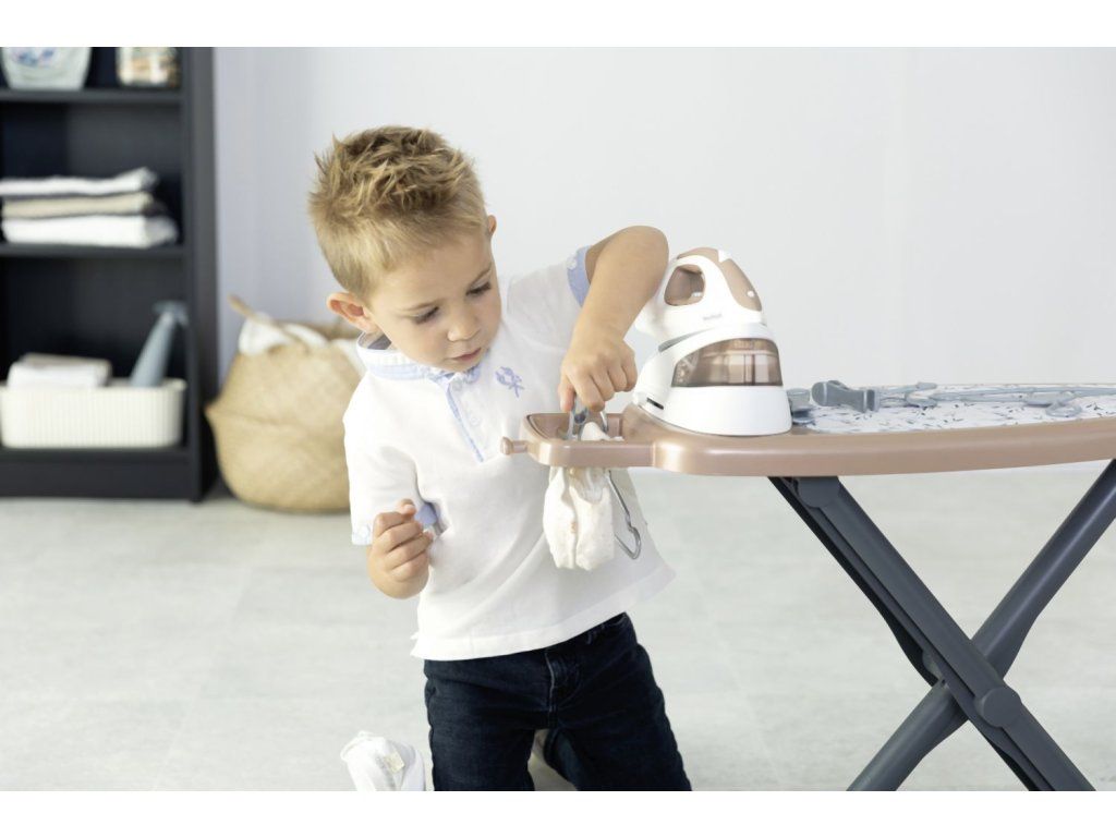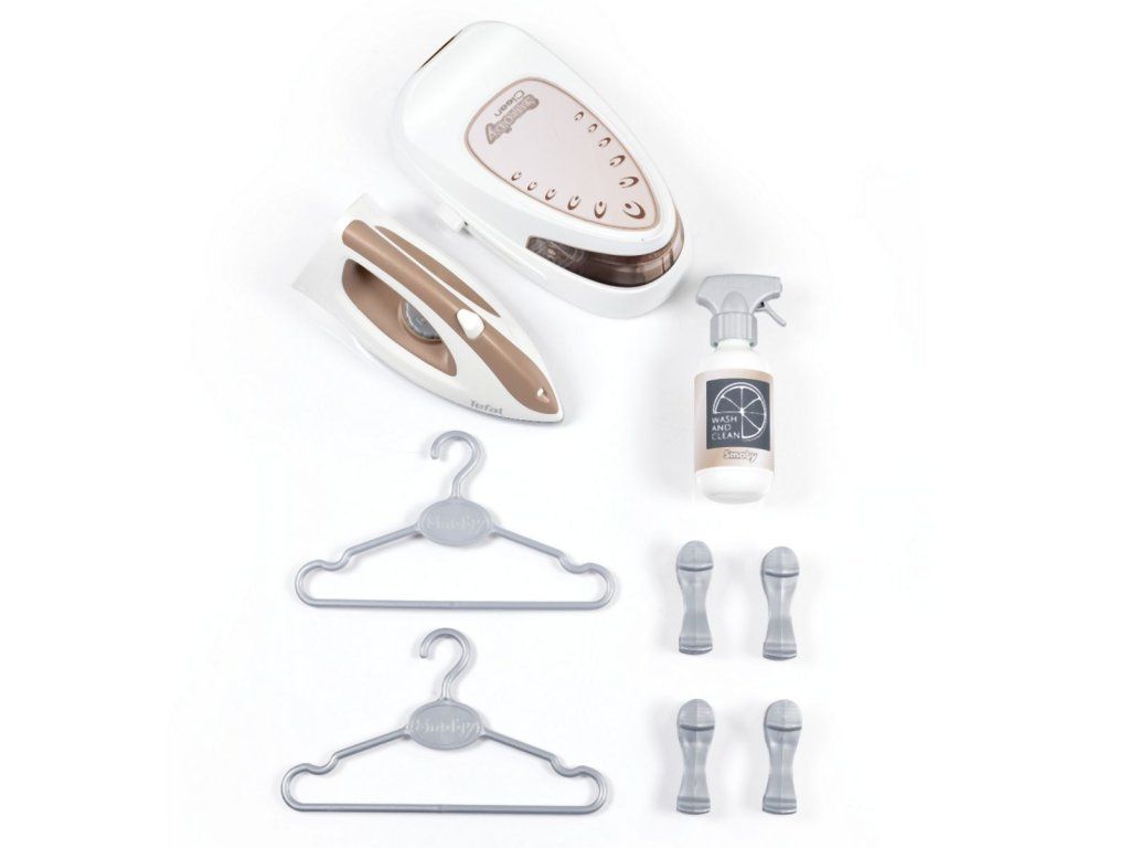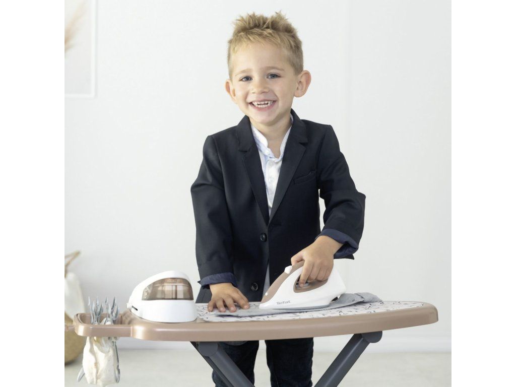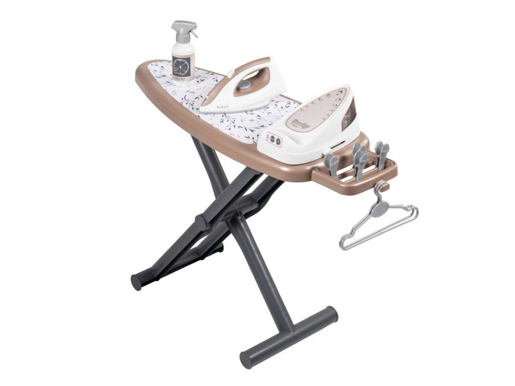 Realistická žehliaca doska s parnou stanicou Tefal, vrátane žehličky s mechanickým otočným gombíkom so zvukom "crick-crack". Súčasťou 2 ramienka, 4 štipce na bielizeň a fľaštička so sprejom na bielizeň. Žehliacu dosku možno rýchlo zložiť. Rozmery produktu (DxŠxV): 23x 48 x 48,5 cm.Dodatočné parametre