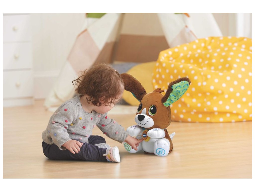 Roztomilý hovoriaci psík s mávajúcimi ušami pomáha dieťaťu rozvíjať slovnú zásobu a porozumenie slov vo vetách. Učí písmená abecedy a počítanie do piatich. Psík interaktívne komunikuje s vašim dieťaťom a obaja sa zároveň úžasne bavia opakovaním všetkého, čo dieťa hovorí. Pohybuje hlavou, máva ušami aj v rytme chytľavých pesničiek.Dodatočné parametre