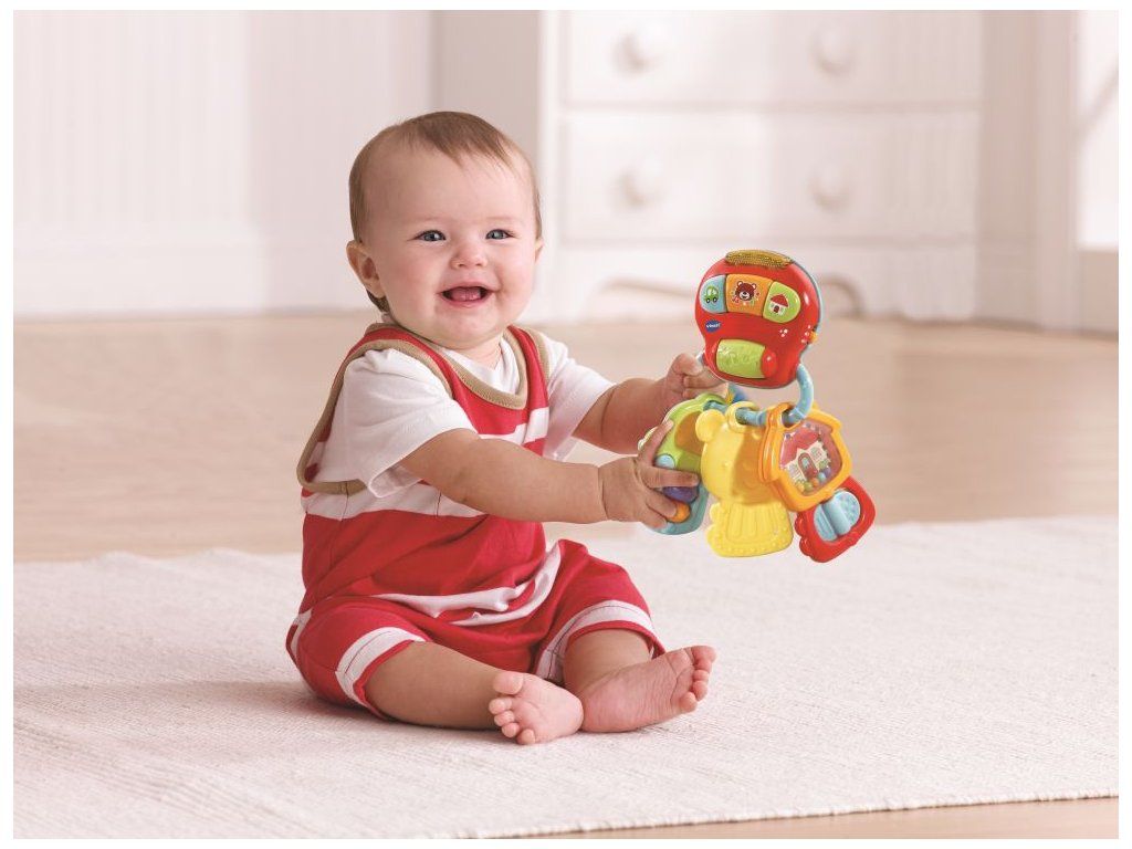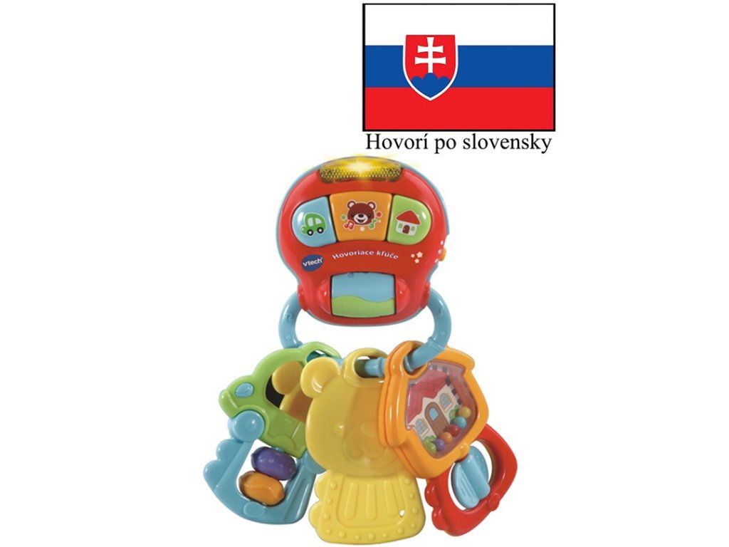 Interaktívny elektronický prívesok na kľúče s tromi kľúčmi pre deti už od narodenia v slovenskom jazyku. Pohybový snímač alebo farebné tlačidlá spúšťajú zábavné frázy, milé melódie aj pesničky. Pohyblivé prvky rozvíjajú jemnú motoriku dieťaťa. Trasením s kľúčmi tiež interakciu. Kľúče slúži aj ako ""hryzátko"" pre masírovanie ďasien dieťaťa, tak aby prvé zúbky moc neboleli. Blikajúce svetielko a kotúľajúce sa koráliky priťahujú pozornosť dieťaťa a rozvíja stimuláciu očí.Dodatočné parametre