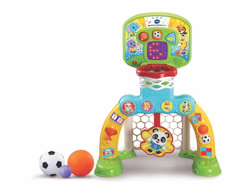 "Táto vzdelávacia elektronická hračka naučí deti čísla, farby aj tvary. A ešte si pri tom užijú množstvo aktívnej zábavy.! Vtech Športové centrum má basketbalový kôš s počítačom vhodených košov. Pre malých futbalistov je súčasťou aj futbalová brána s roztomilým brankárom, ktorý vie zareagovať na každý úspešný kop. Súčasťou Vtech Športového centra 3 v 1 je malá futbalová a basketbalová lopta. Na veľkej LED obrazovke deti uvidia, ako sa im pripočítavajú úspešné hody alebo ich tiež pobavia zábavné animácie. Otočné kolieska rozvíjajú u detí jemnú motoriku a manipulácia s loptami aj motoriku hrubú. Stlačením tlačidiel sa spustí zábavné a náučné frázy. Vtech Športové centrum vyzýva interakcií deti k hre, rozvíja ich postreh, logické myslenie a túžbu športovať."Dodatočné parametre