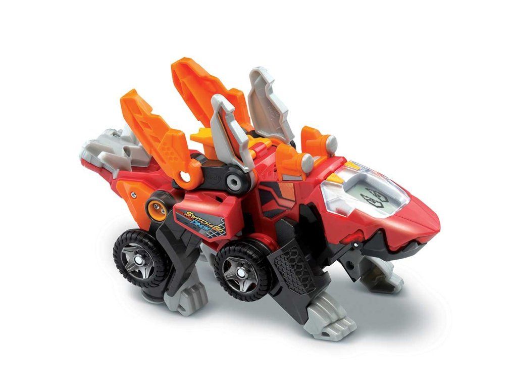 Hovoriaci auto-dinosaurus s digitálnym displejom v slovenskom jazyku. Transformujte svojho dinosaura na špeciálne závodné auto alebo premeňte auto na zúrivého dinosaura. V okamihu sa tento stále hladný dinosaurus dokáže premeniť na „vytunené“ závodné auto! Displej s animáciami sa mení v závislosti od režimu hry: Dinosaurie oči alebo pilot v režime závodného špeciálu. V režime Dinosaura pohybom oranžového akčného tlačidla otvorí Stegy papuľu, z ktorej mu „šľahá oheň“. Žlté tlačidlá aktivujú zábavné zvuky a frázy. Obsahuje • viac ako 50 zvukov a fráz. • displej, ktorý zobrazuje rôzne animácie v závislosti na hernom režime. • 2 tlačidlá, ktoré aktivujú zábavné zvuky a frázy • nastavenie hlasitosti zvukuDodatočné parametre